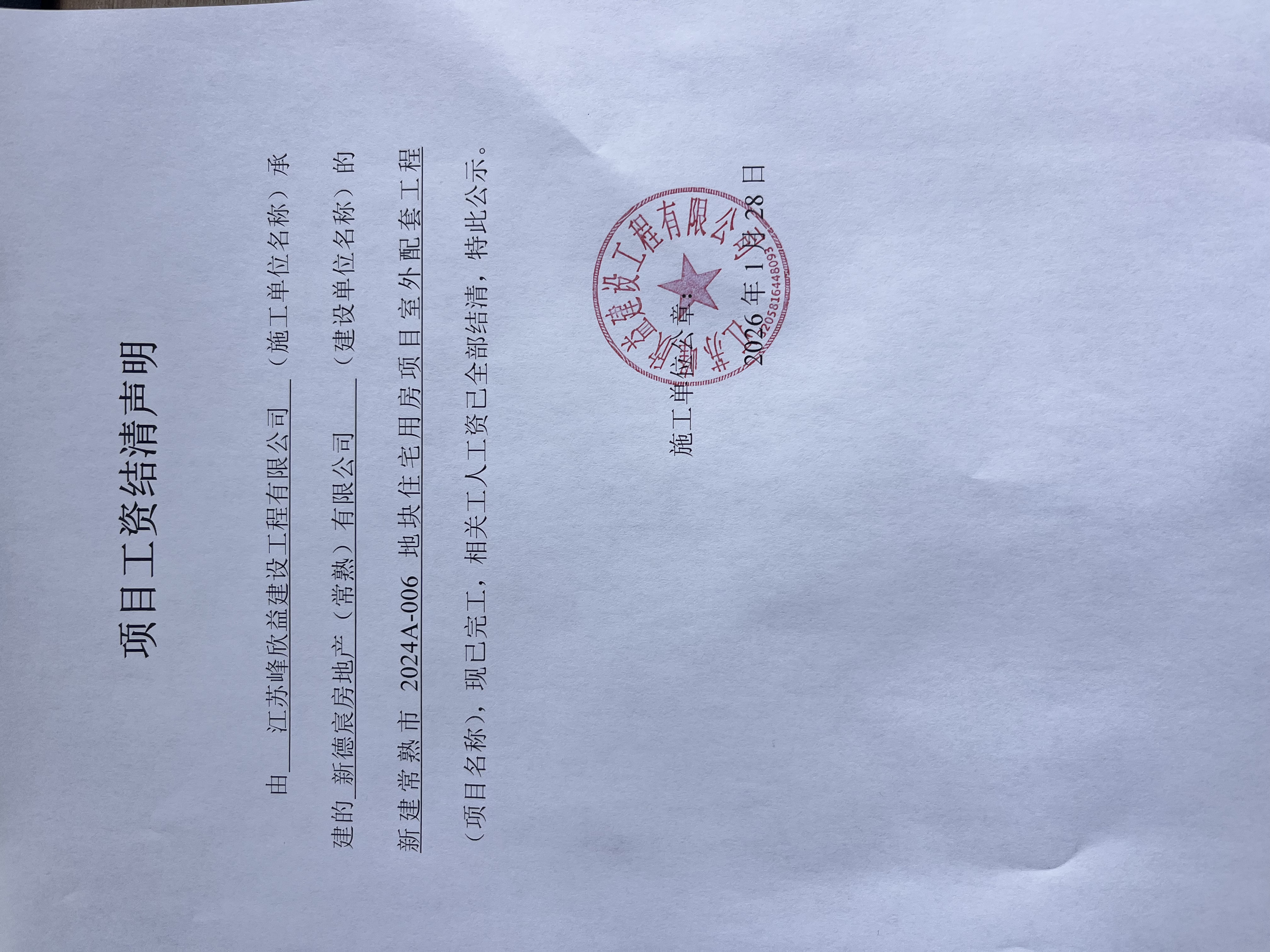 江苏峰欣益建设工程有限公司新建常熟市2024A-006地块住宅用房项目室外配套工程