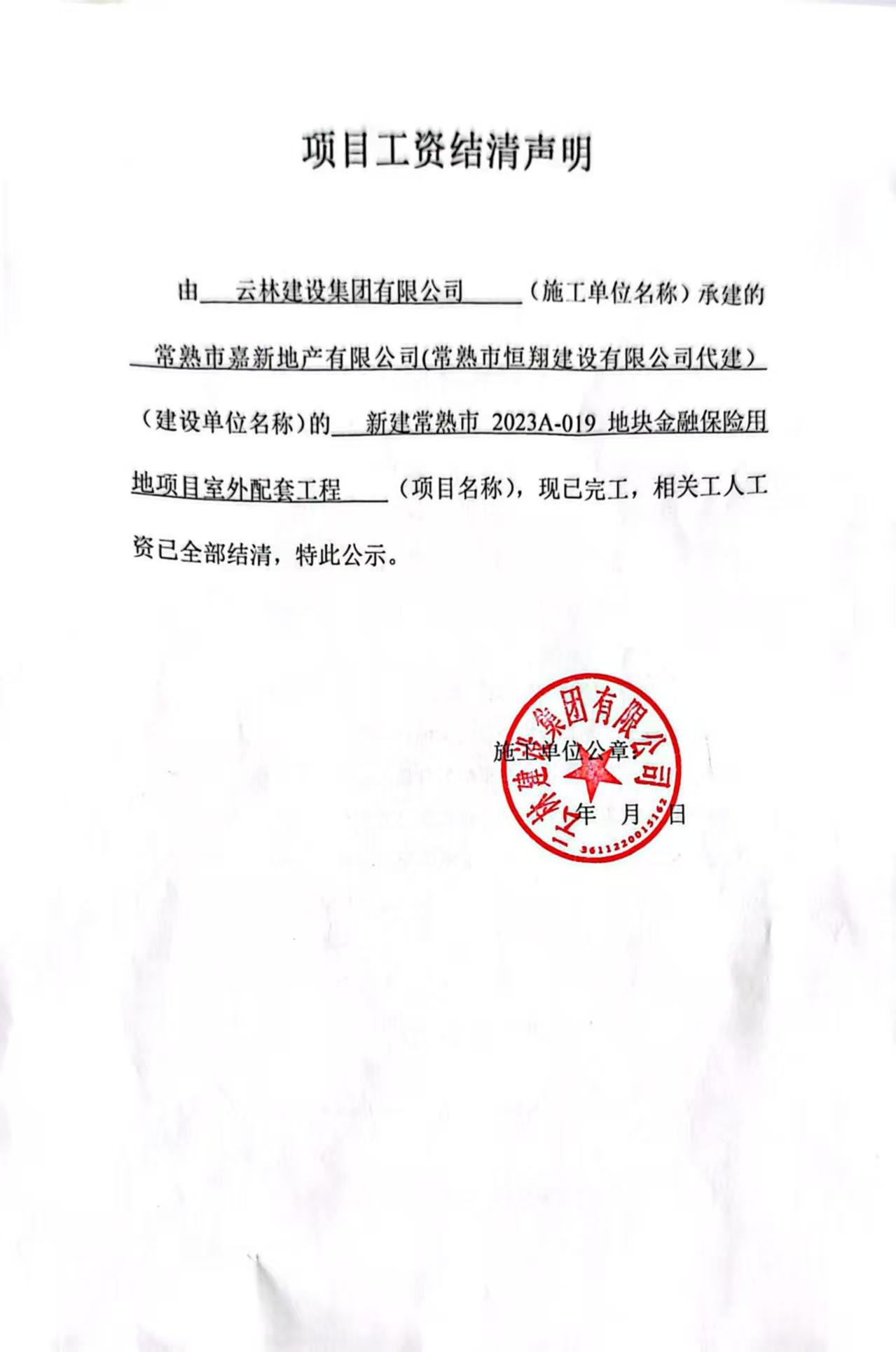云林建设集团有限公司新建常熟市 2023A-019 地块金融保险用地项目室外配套工程