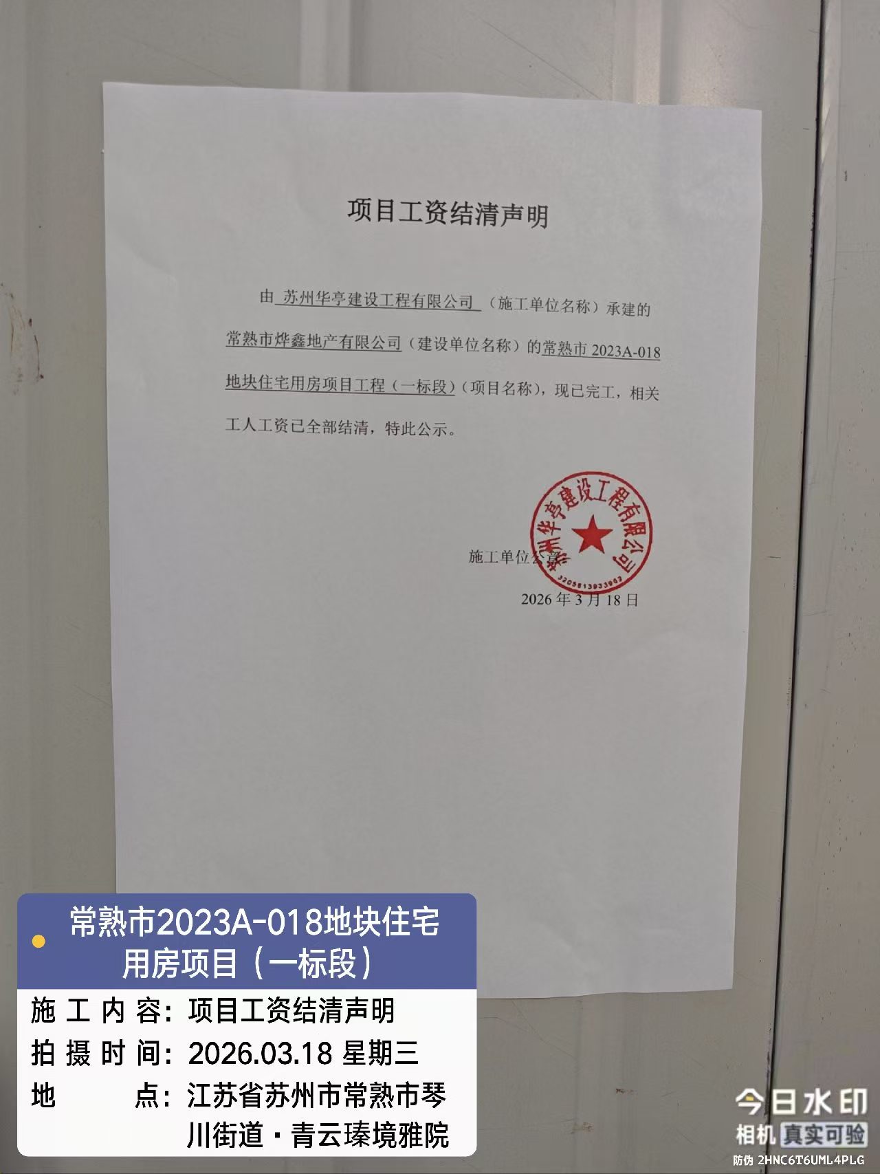苏州华亭建设工程有限公司常熟市2023A-018地块住宅用房项目工程(一标段)