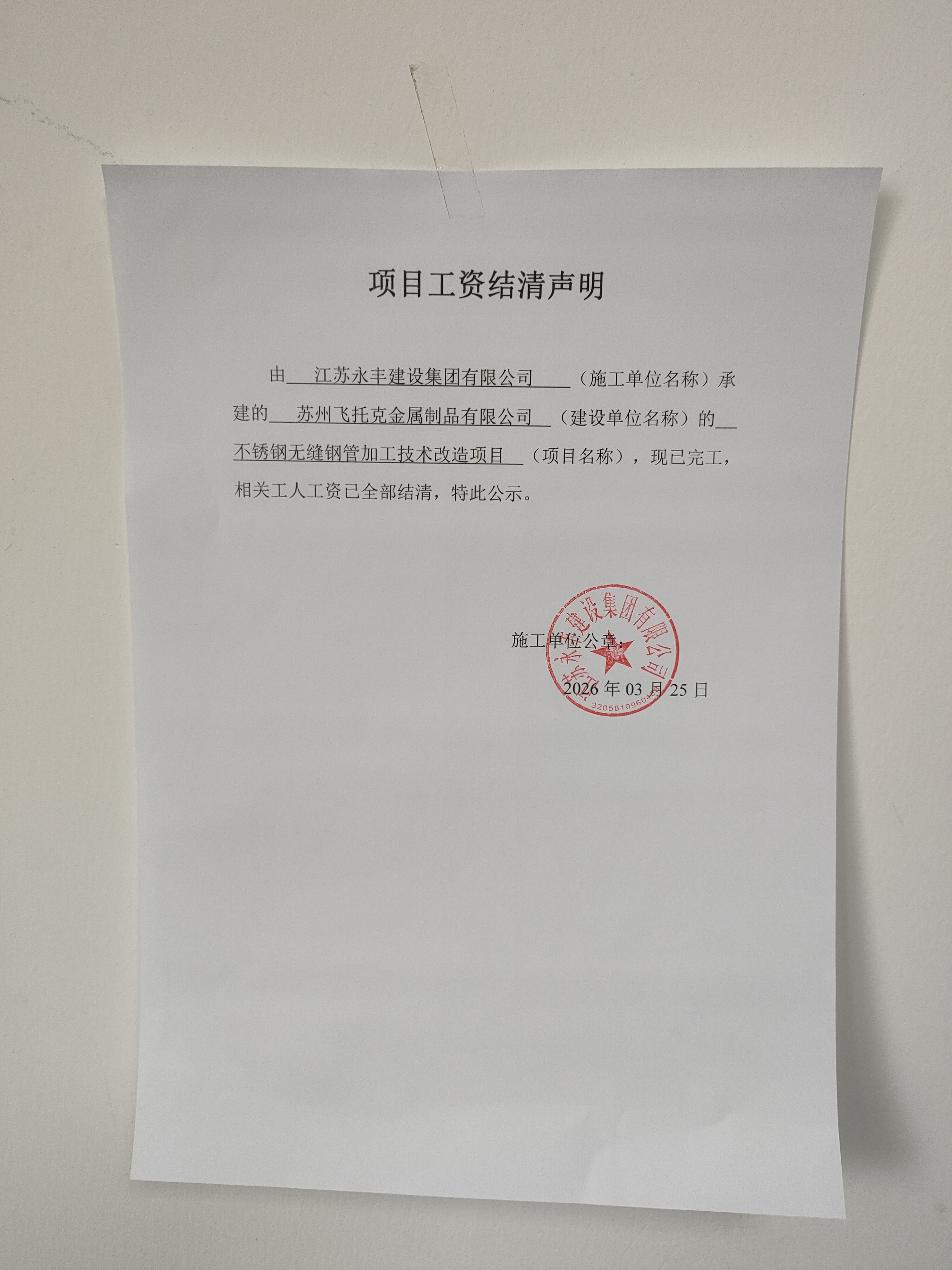 江苏永丰建设集团有限公司不锈钢无缝钢管加工技术改造项目