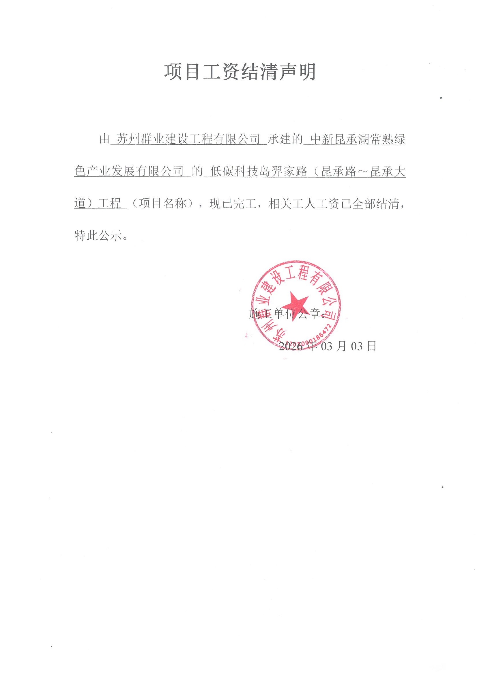 苏州群业建设工程有限公司低碳科技岛羿家路(昆承路~昆承大道)工程