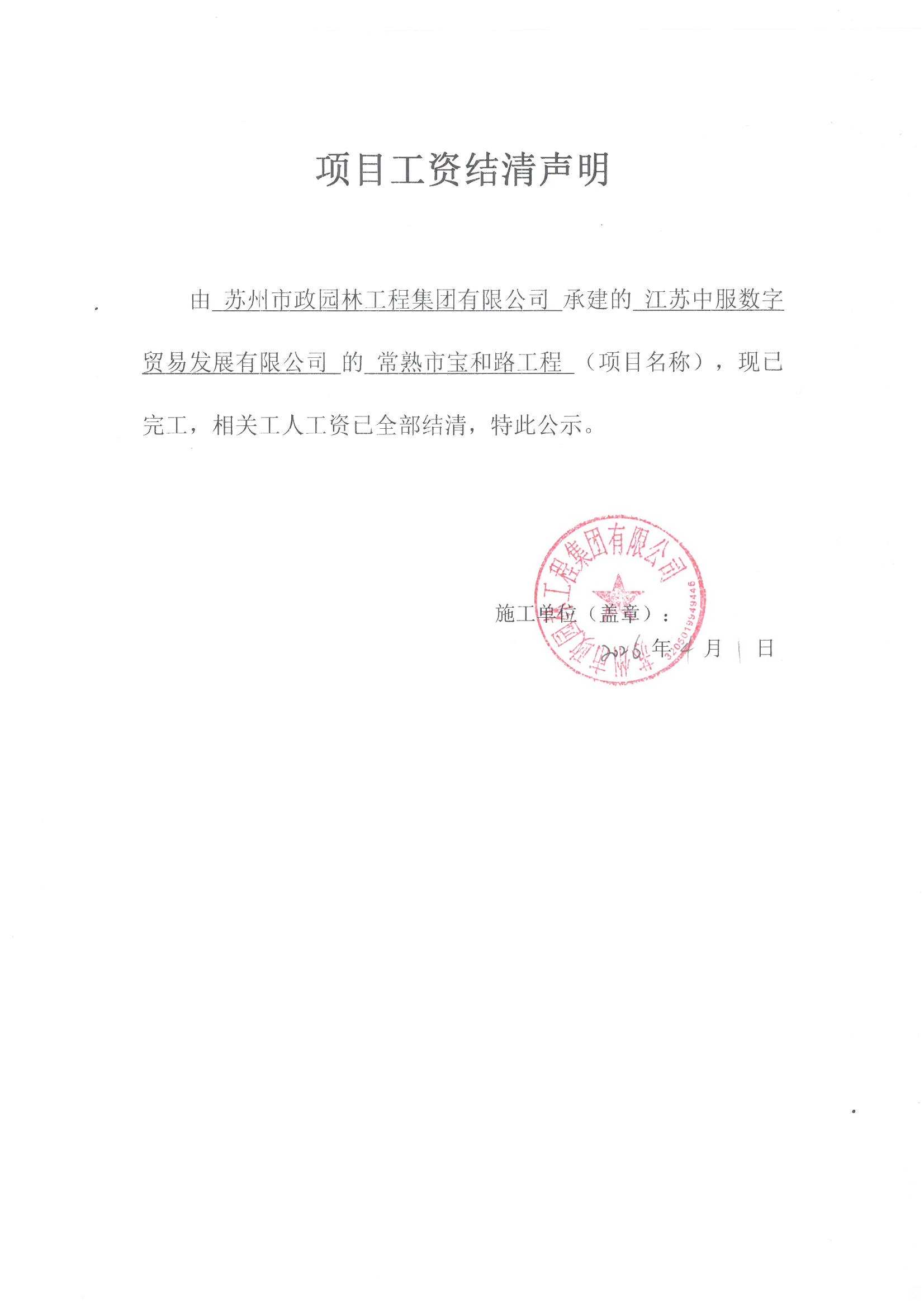 苏州市政园林工程集团有限公司常熟市宝和路工程