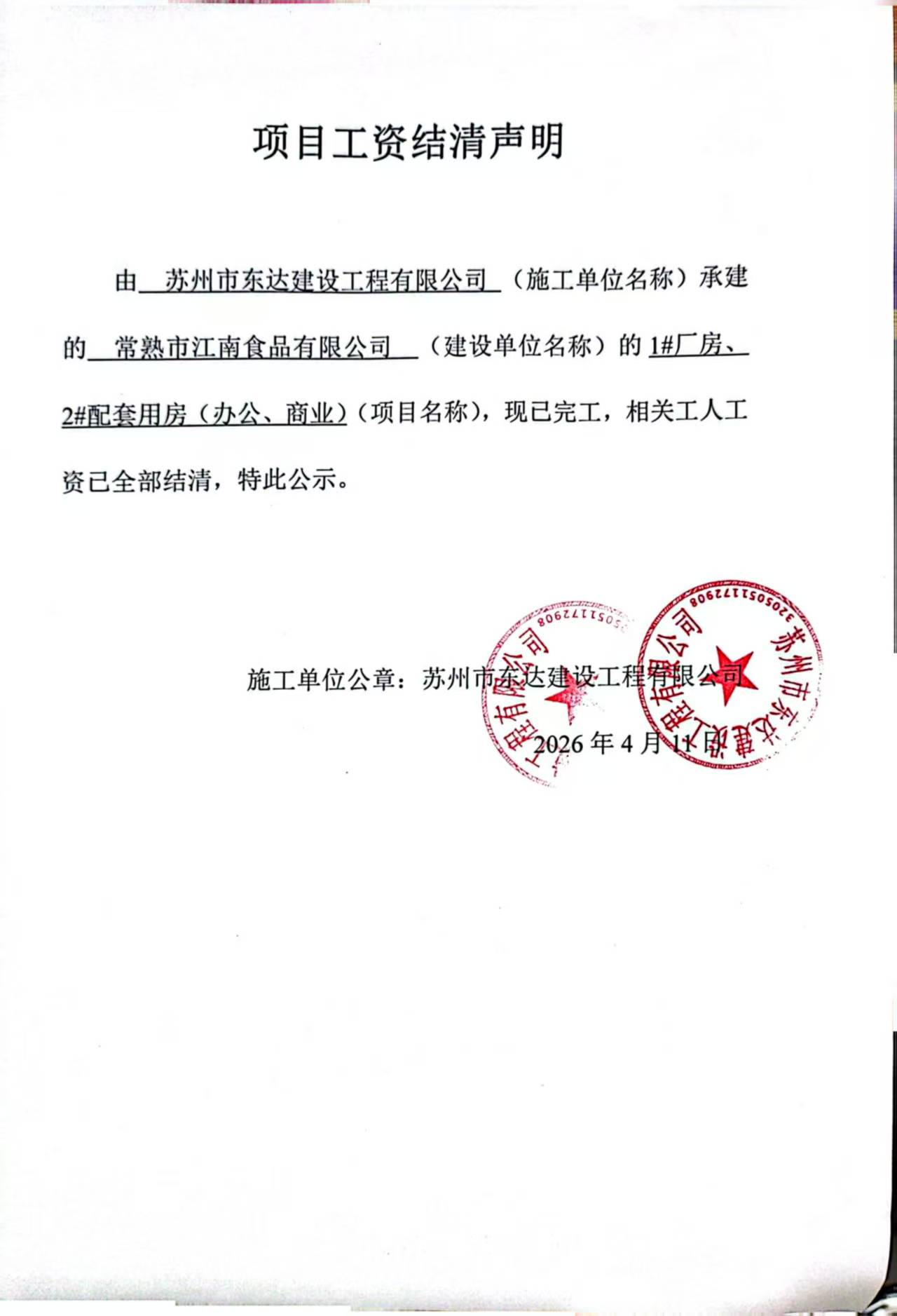 苏州市东达建设工程有限公司1#厂房、2#配套用房(办公、商业)
