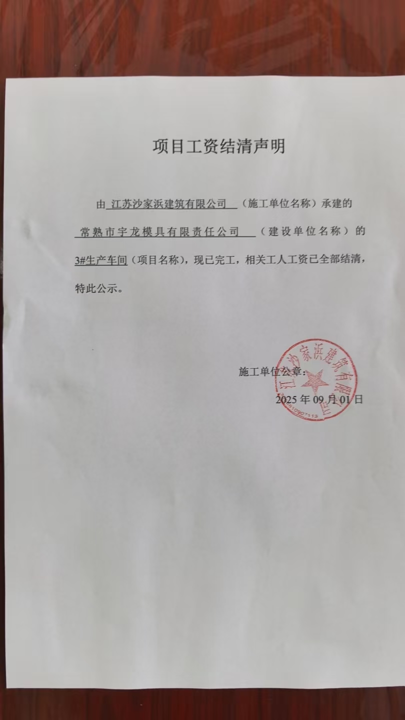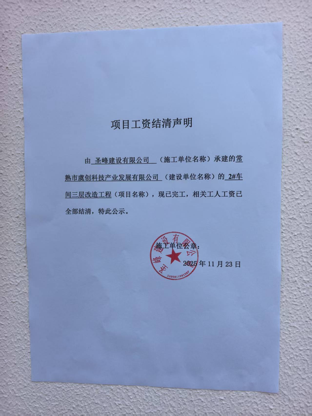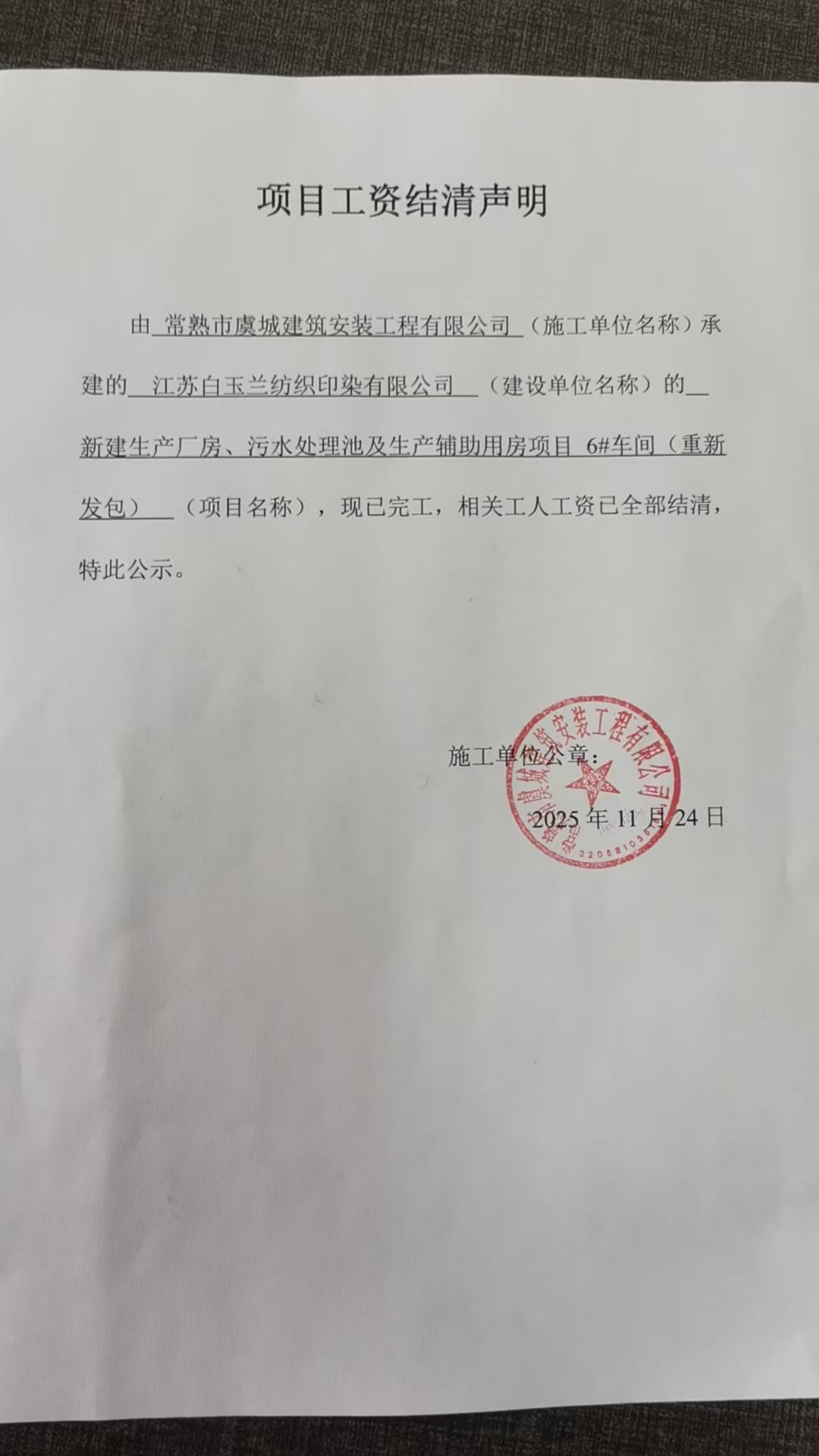 常熟市虞城建筑安装工程有限公司新建生产厂房、污水处理池及生产辅助用房项目 6#车间(重新发包)