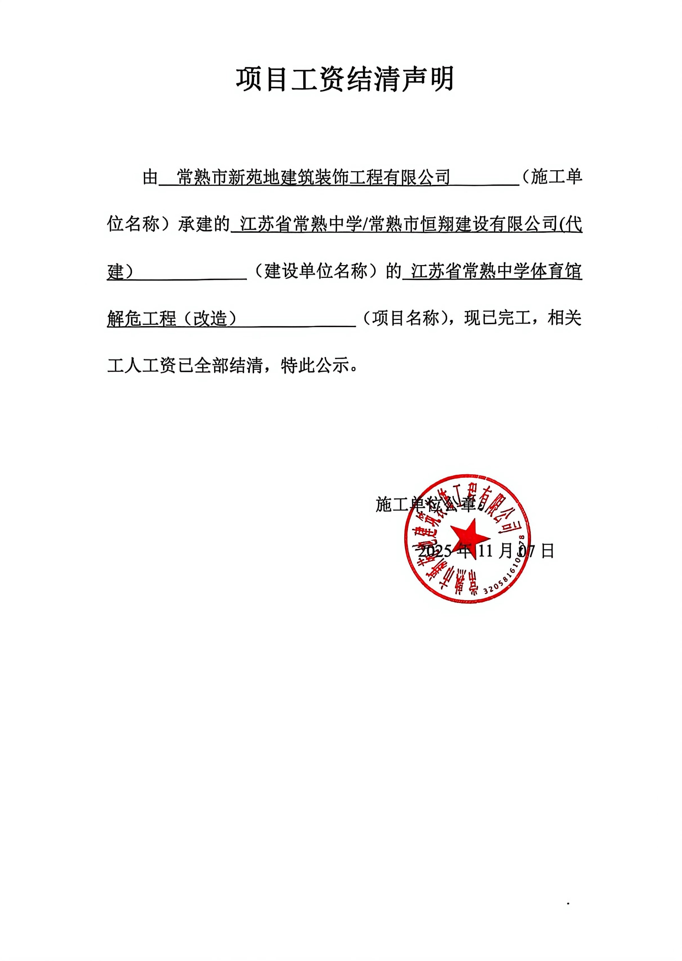 常熟市新苑地建筑装饰工程有限公司江苏省常熟中学体育馆解危工程(改造)