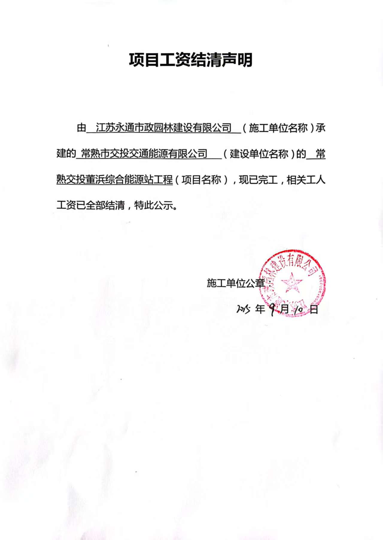 江苏永通市政园林建设有限公司常熟交投董浜综合能源站工程