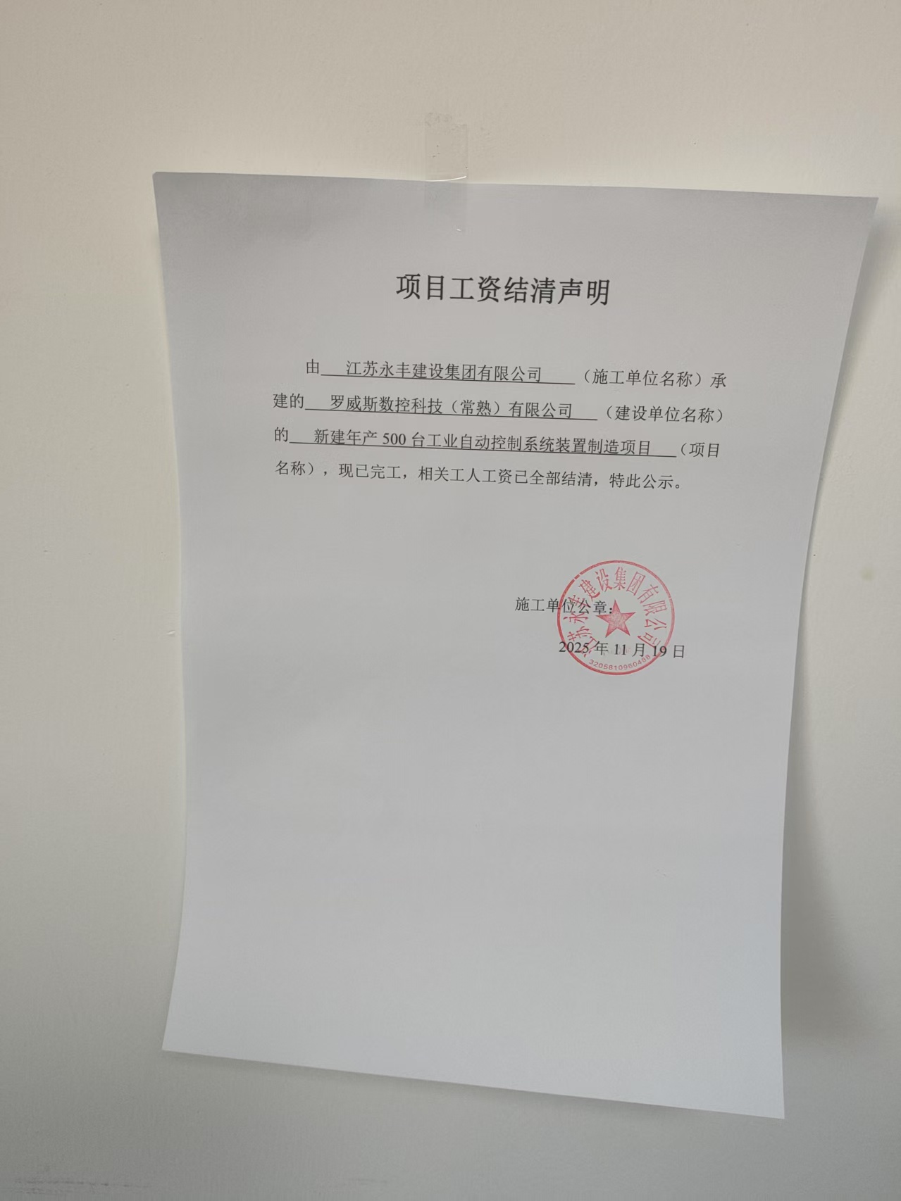 江苏永丰建设集团有限公司新建年产500台工业自动控制系统装置制造项目