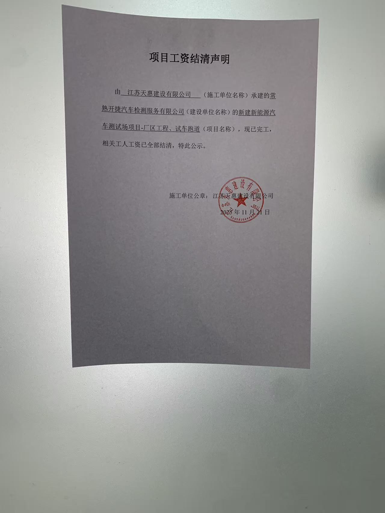 江苏天惠建设有限公司新建新能源汽车测试场项目-厂区工程、试车跑道
