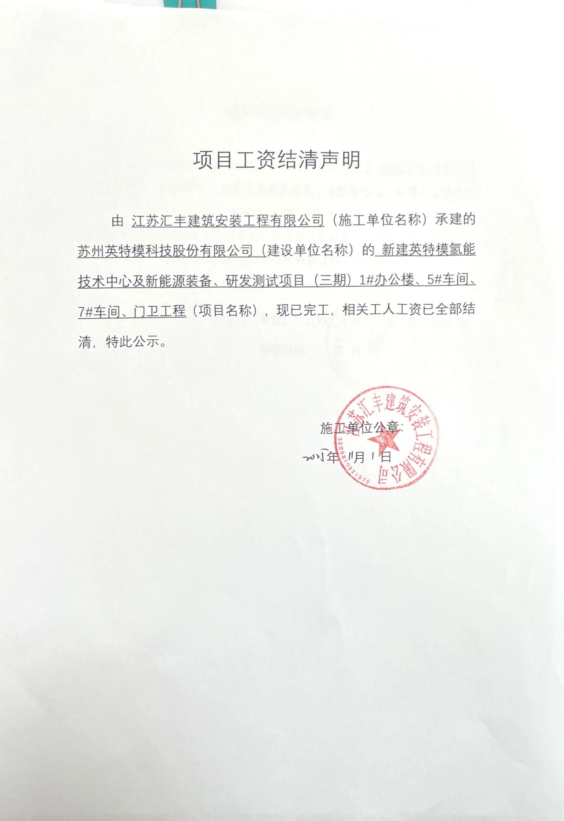 江苏汇丰建筑安装工程有限公司新建英特模氢能技术中心及新能源装备、研发测试项目(三期)1#办公楼、5#车间、7#车间、门卫工程