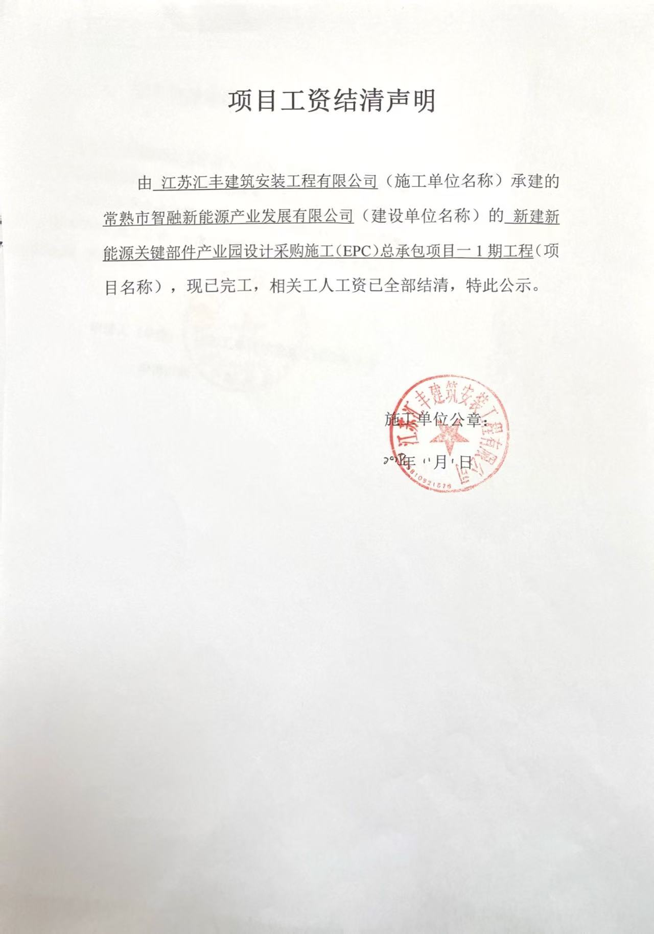 江苏汇丰建筑安装工程有限公司新建新能源关键部件产业园设计采购施工(EPC)总承包项目一1期工程