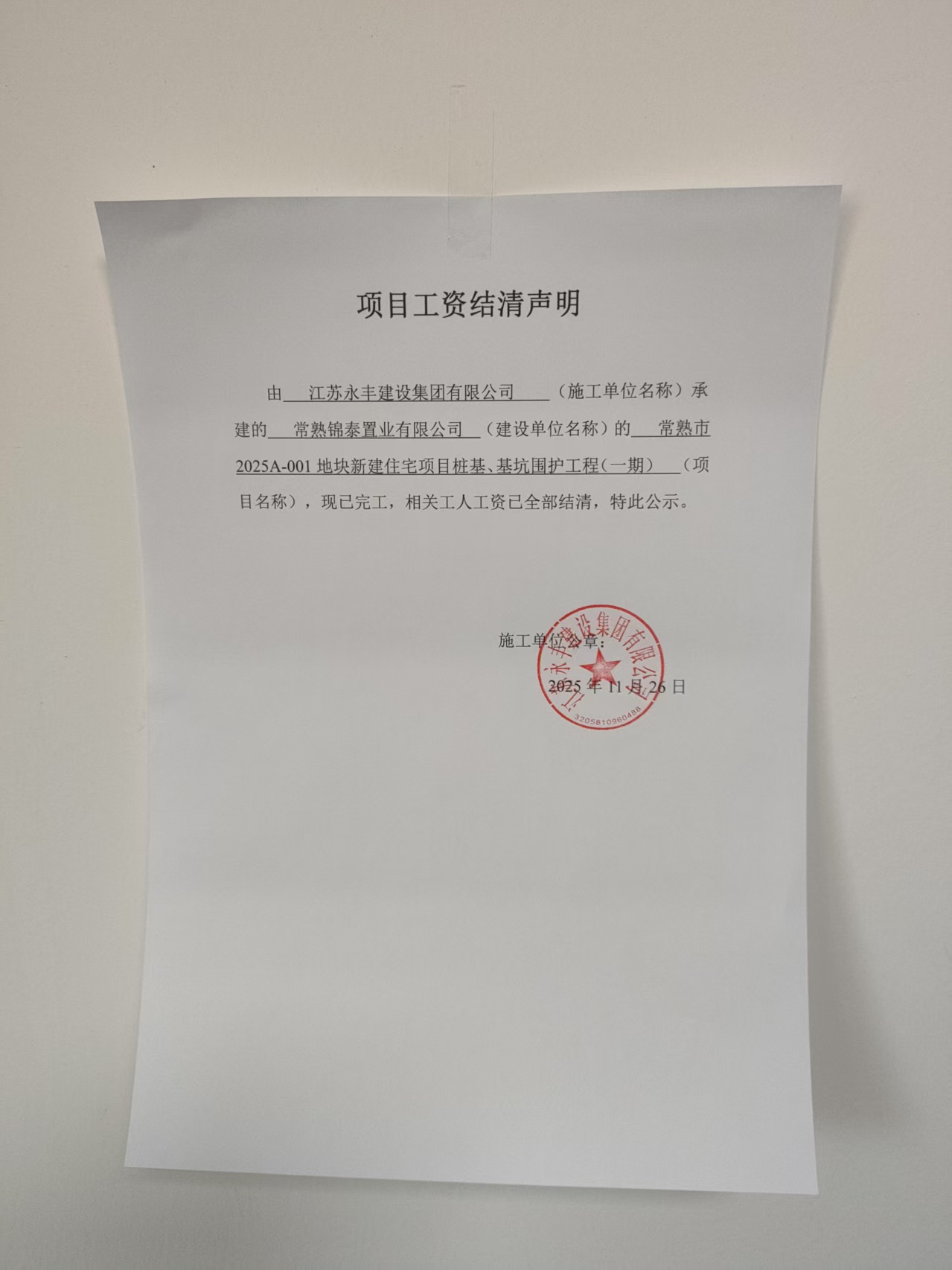 江苏永丰建设集团有限公司常熟市2025A-001地块新建住宅项目桩基、基坑围护工程(一期)