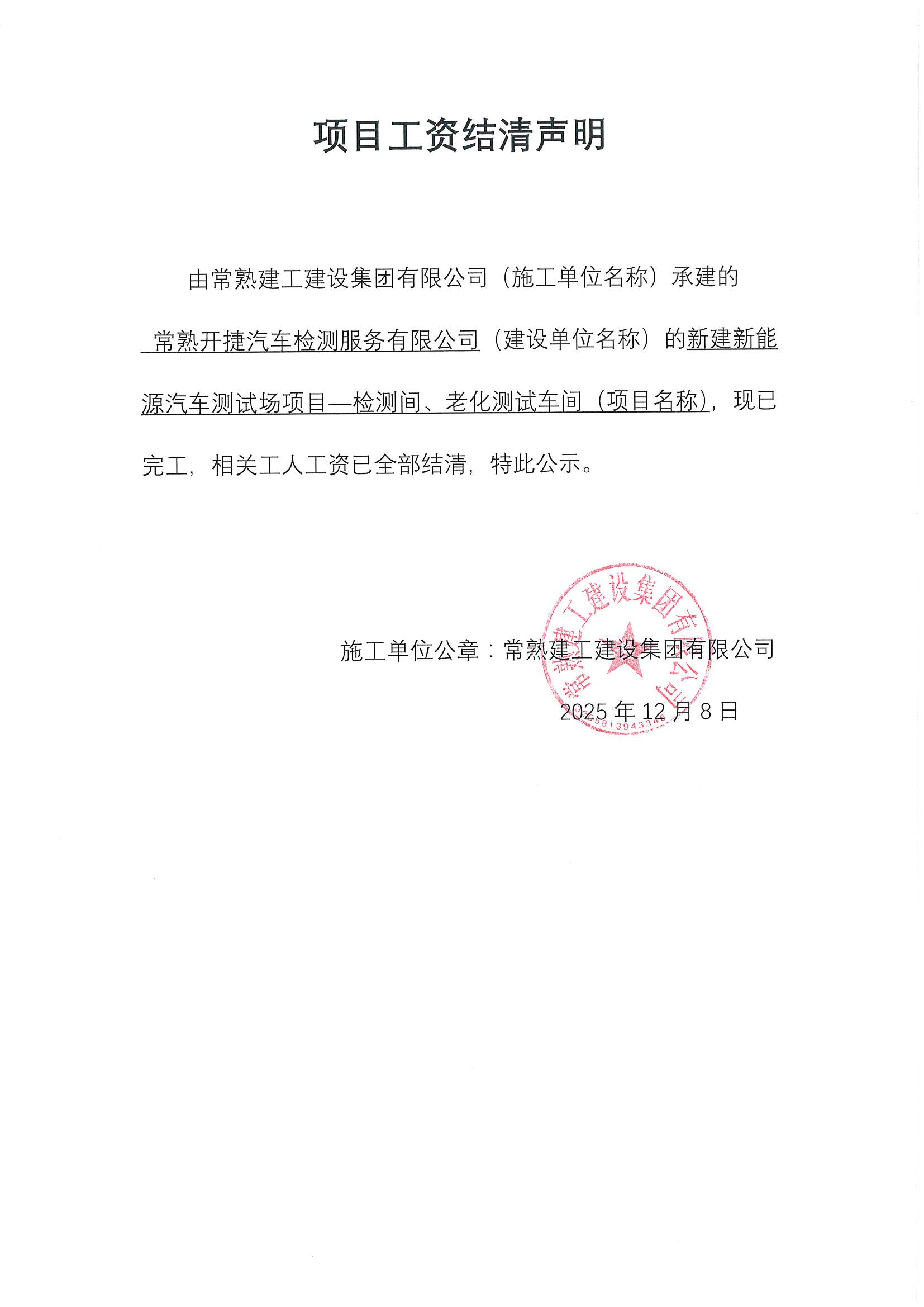 常熟建工建设集团有限公司新建新能源汽车测试场项目—检测间、老化测试车间