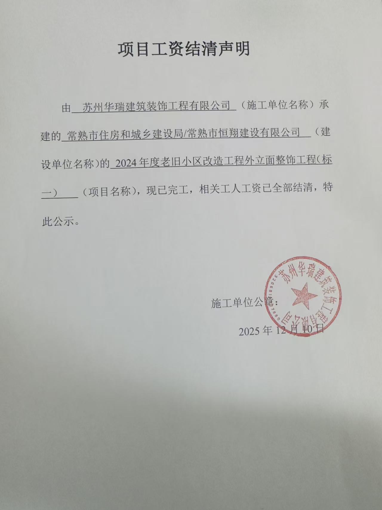 苏州华瑞建筑装饰工程有限公司2024年度老旧小区改造工程外立面整饰工程(标一)