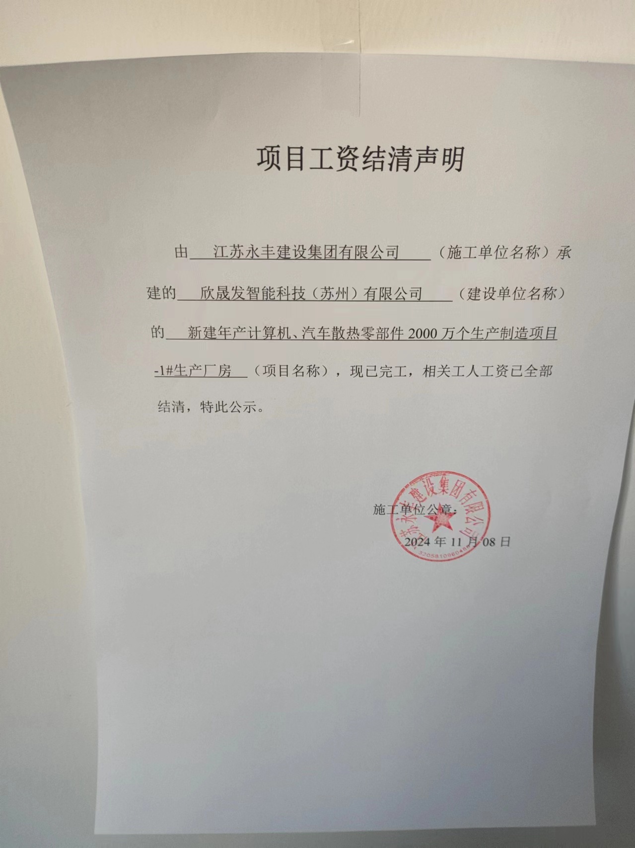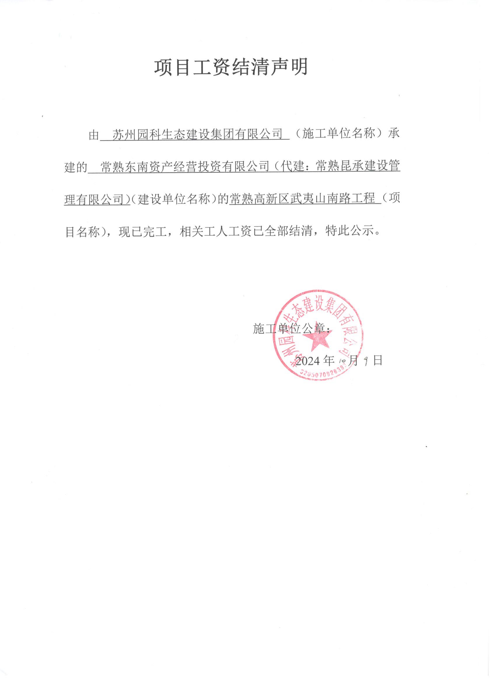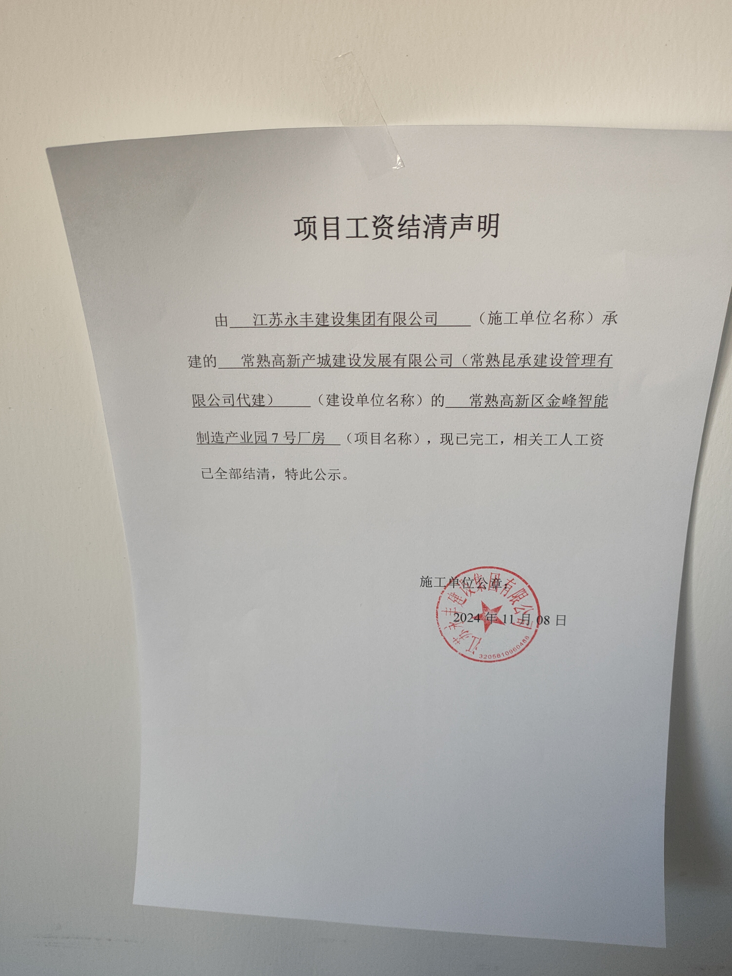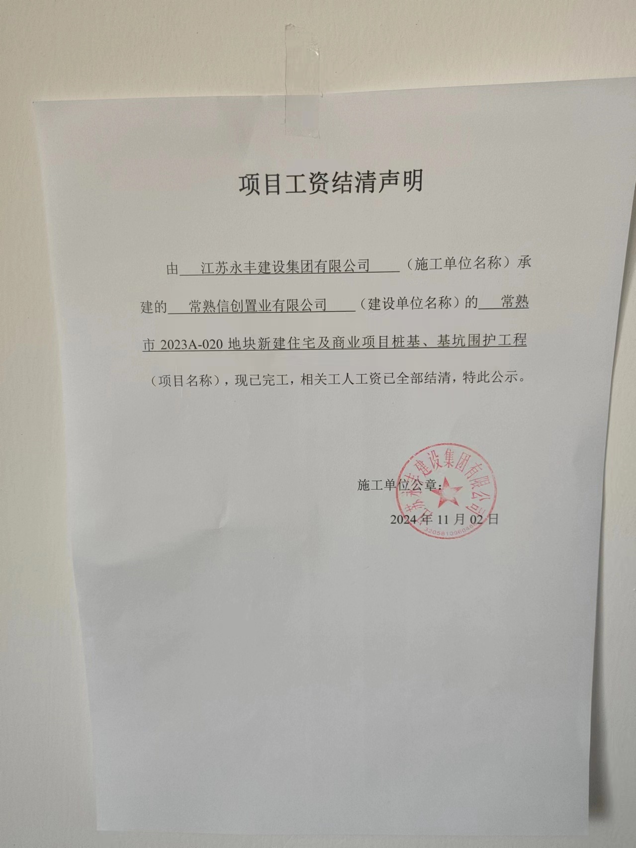 项目工资结清支付公示