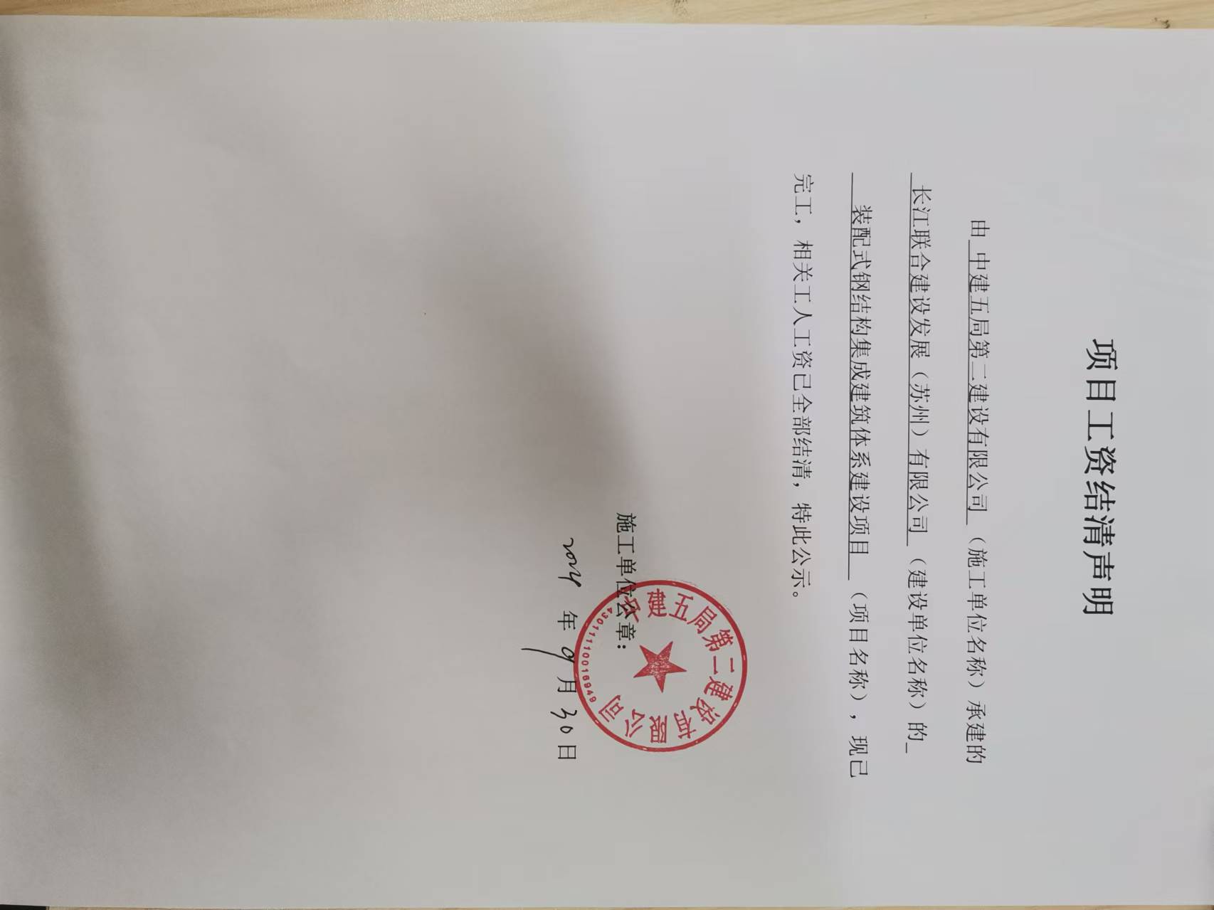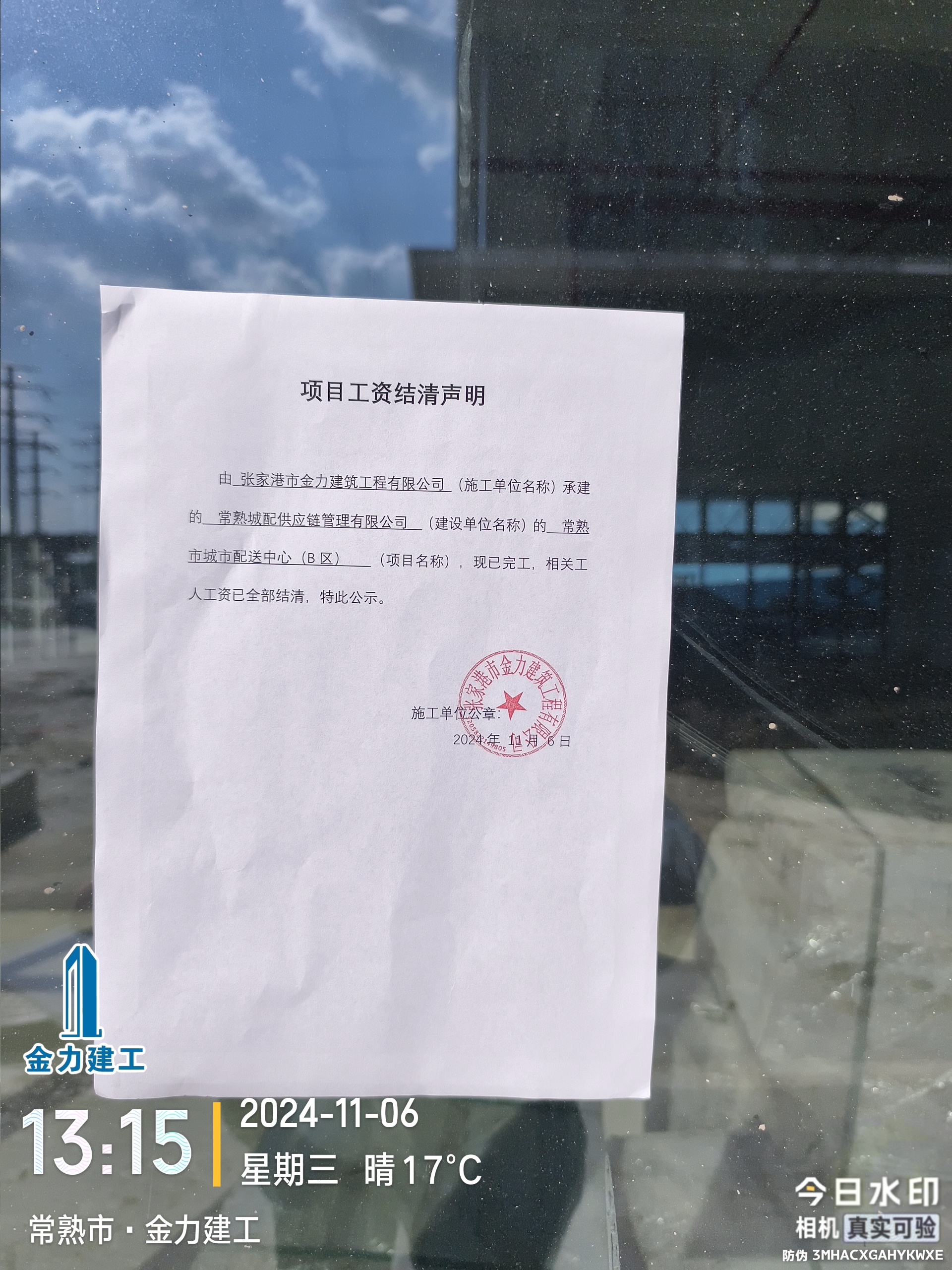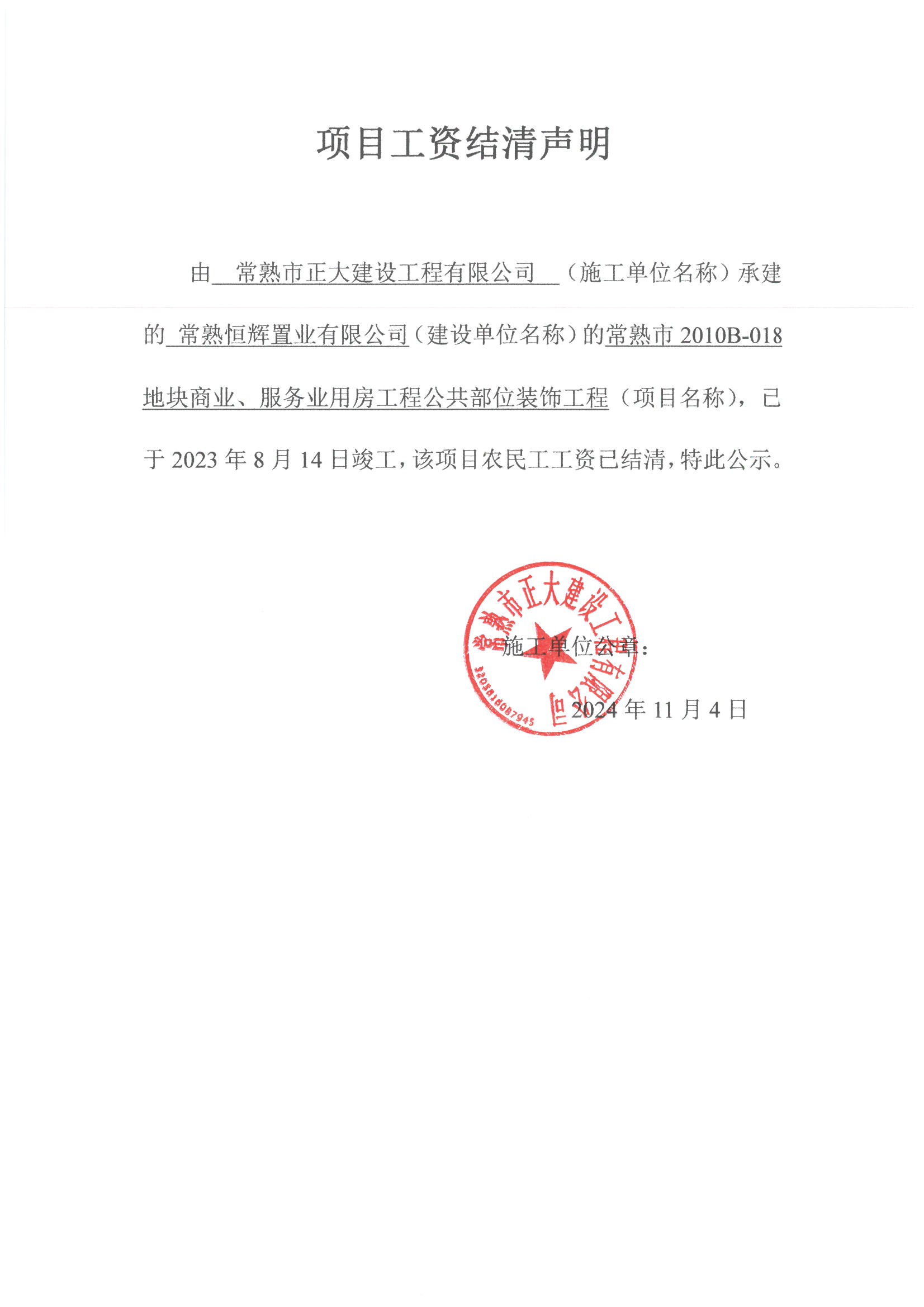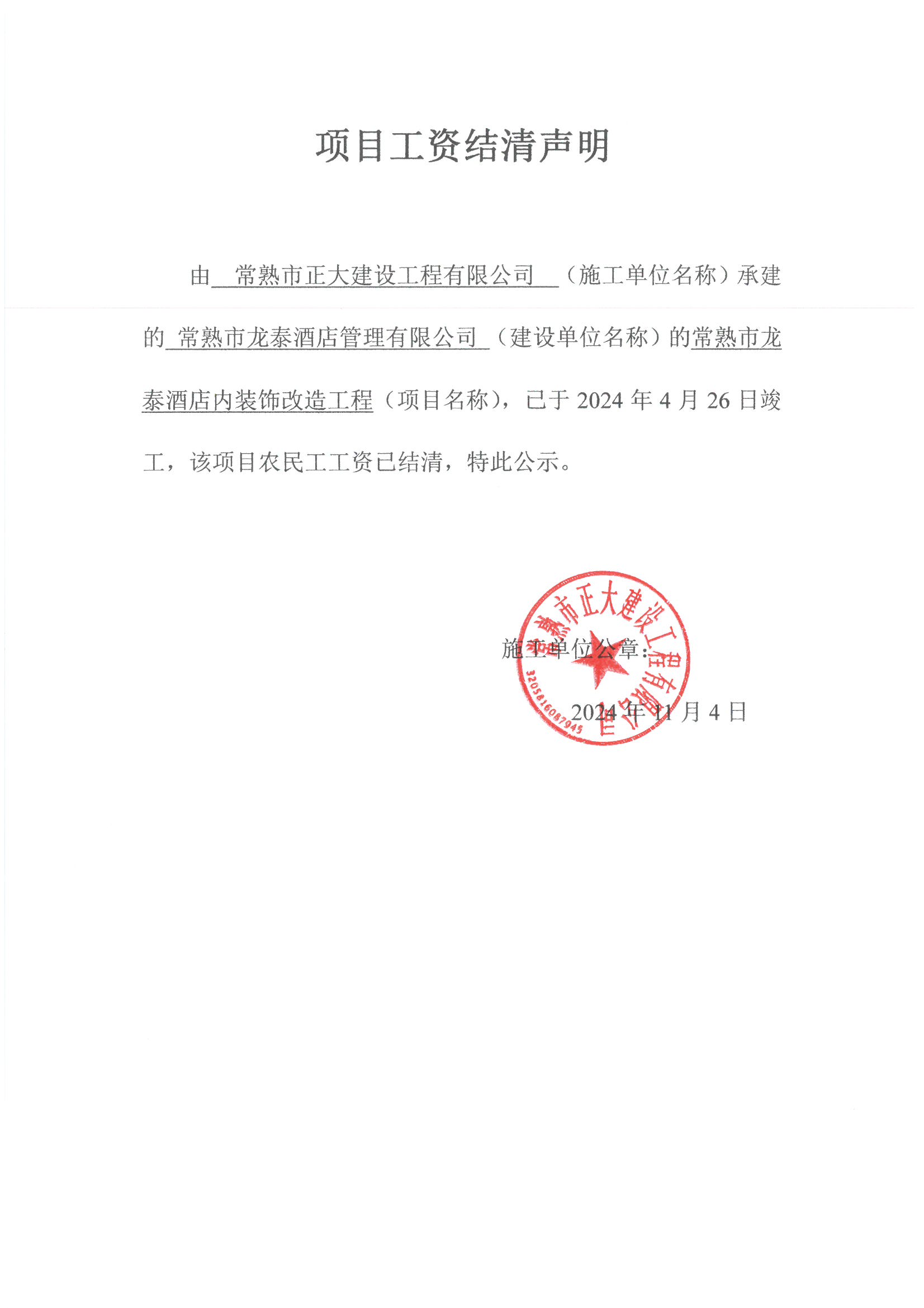 项目工资结清支付公示