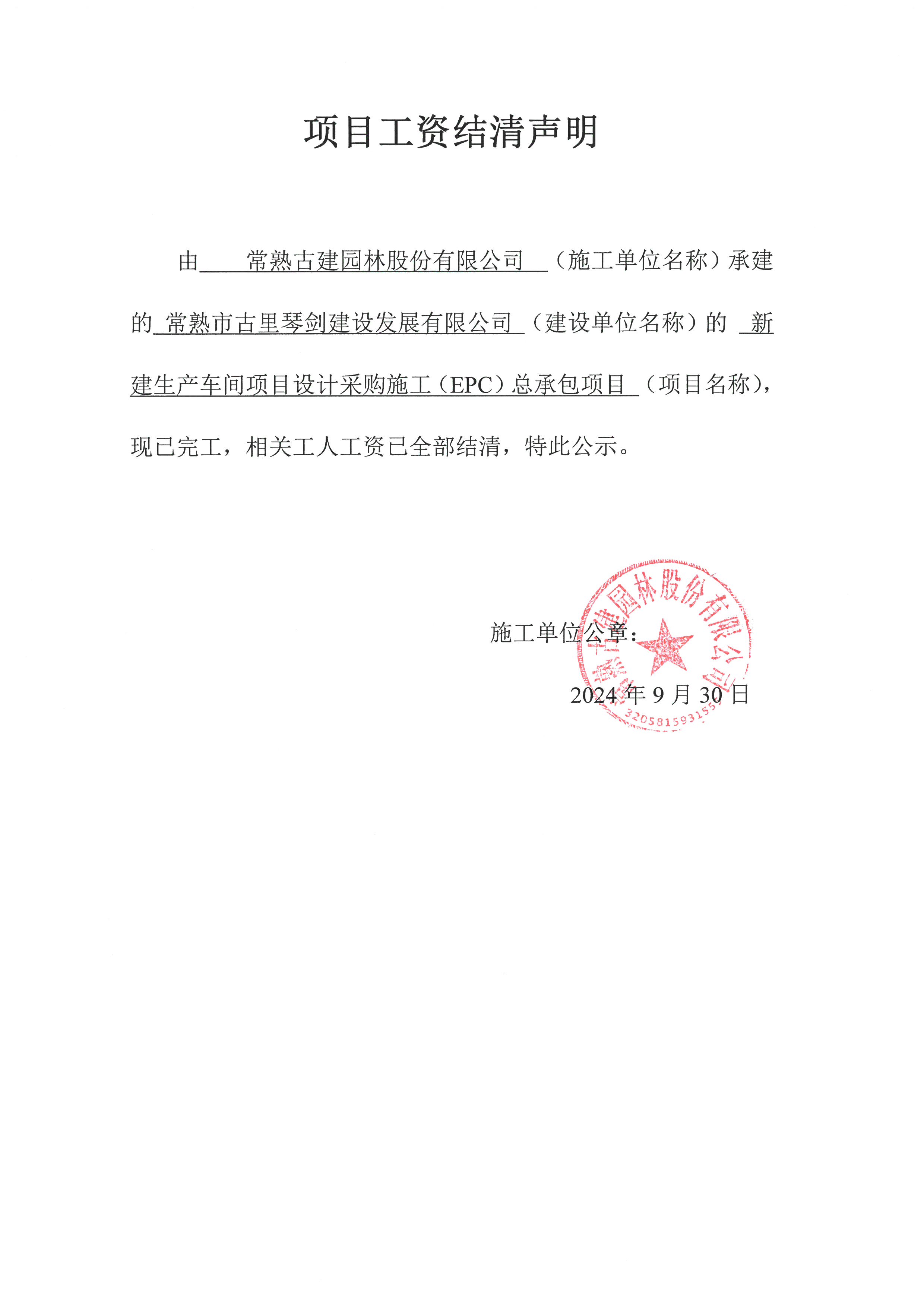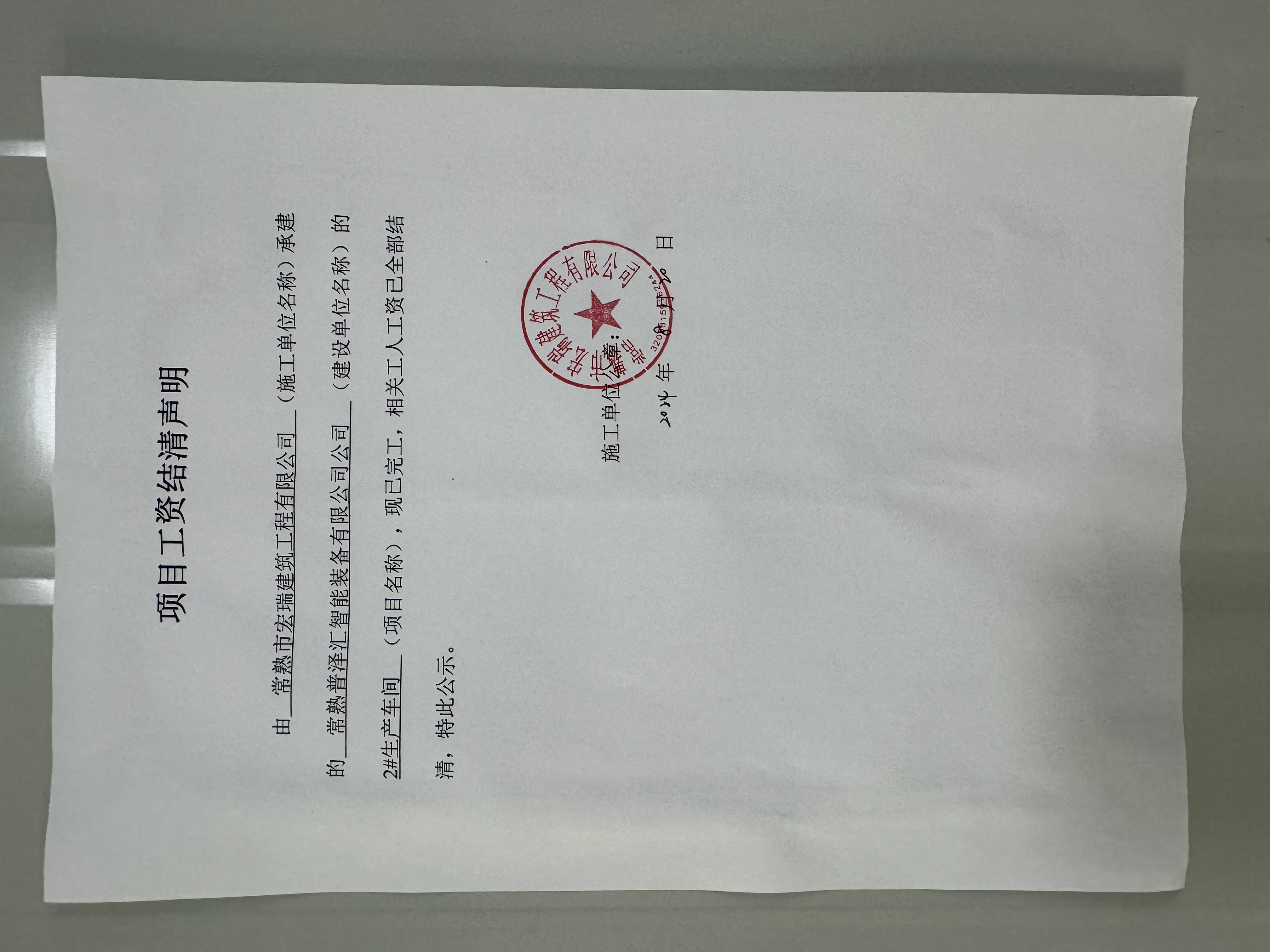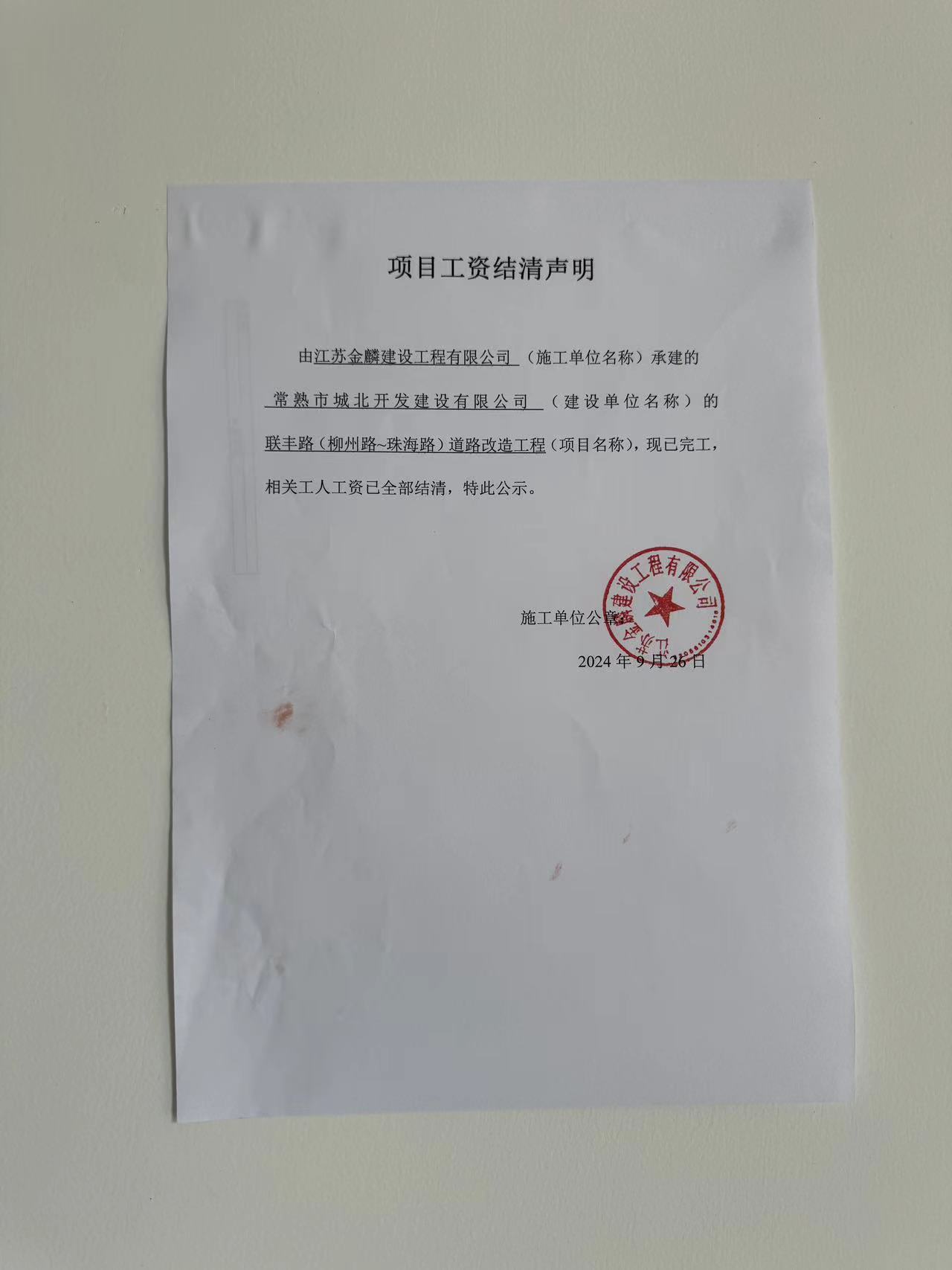项目工资结清支付公示