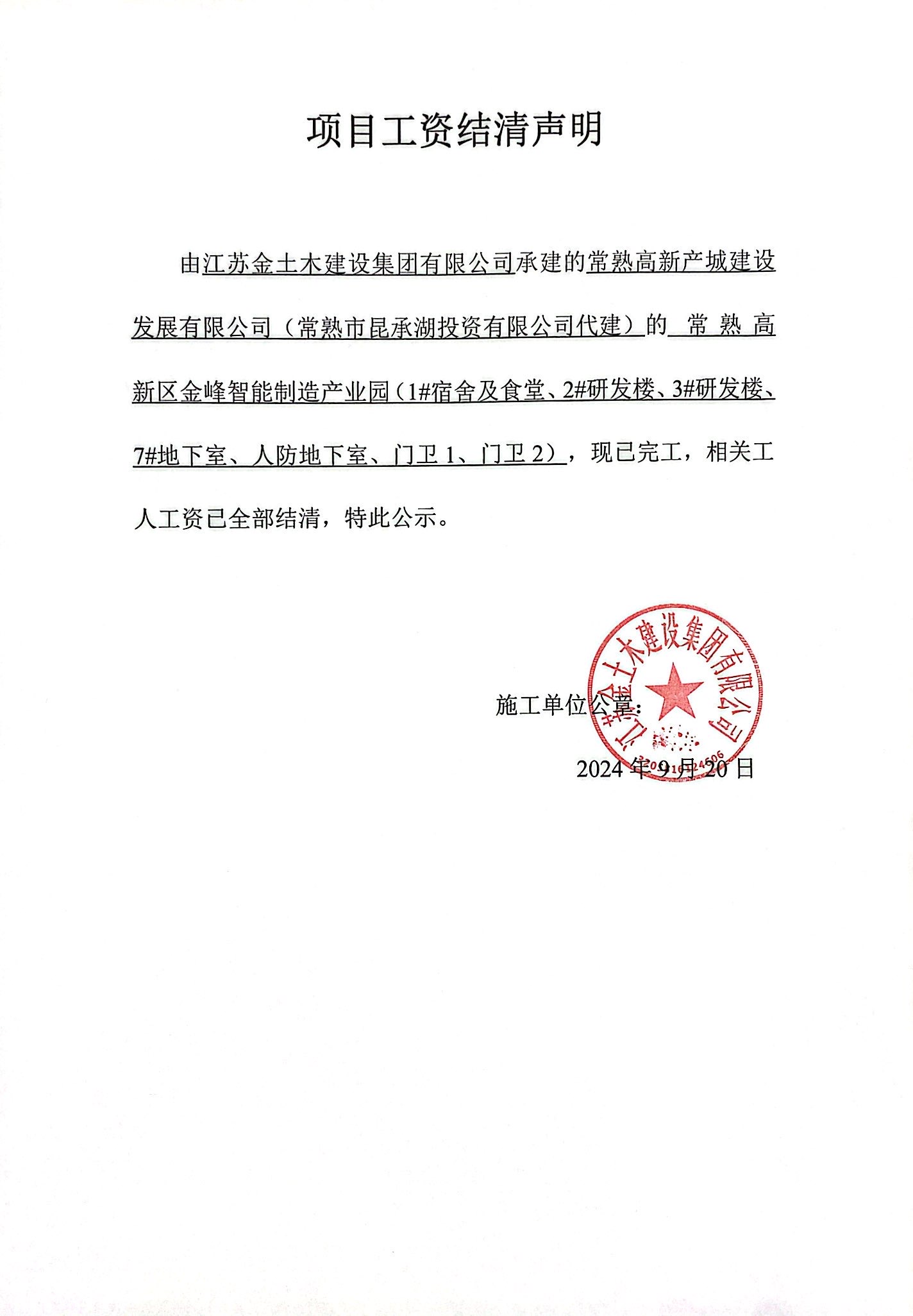 常熟高新区金峰智能制造产业园(1#宿舍及食堂、2#研发楼、3#研发楼、7#地下室、 人防地下室、门卫1、门卫2)