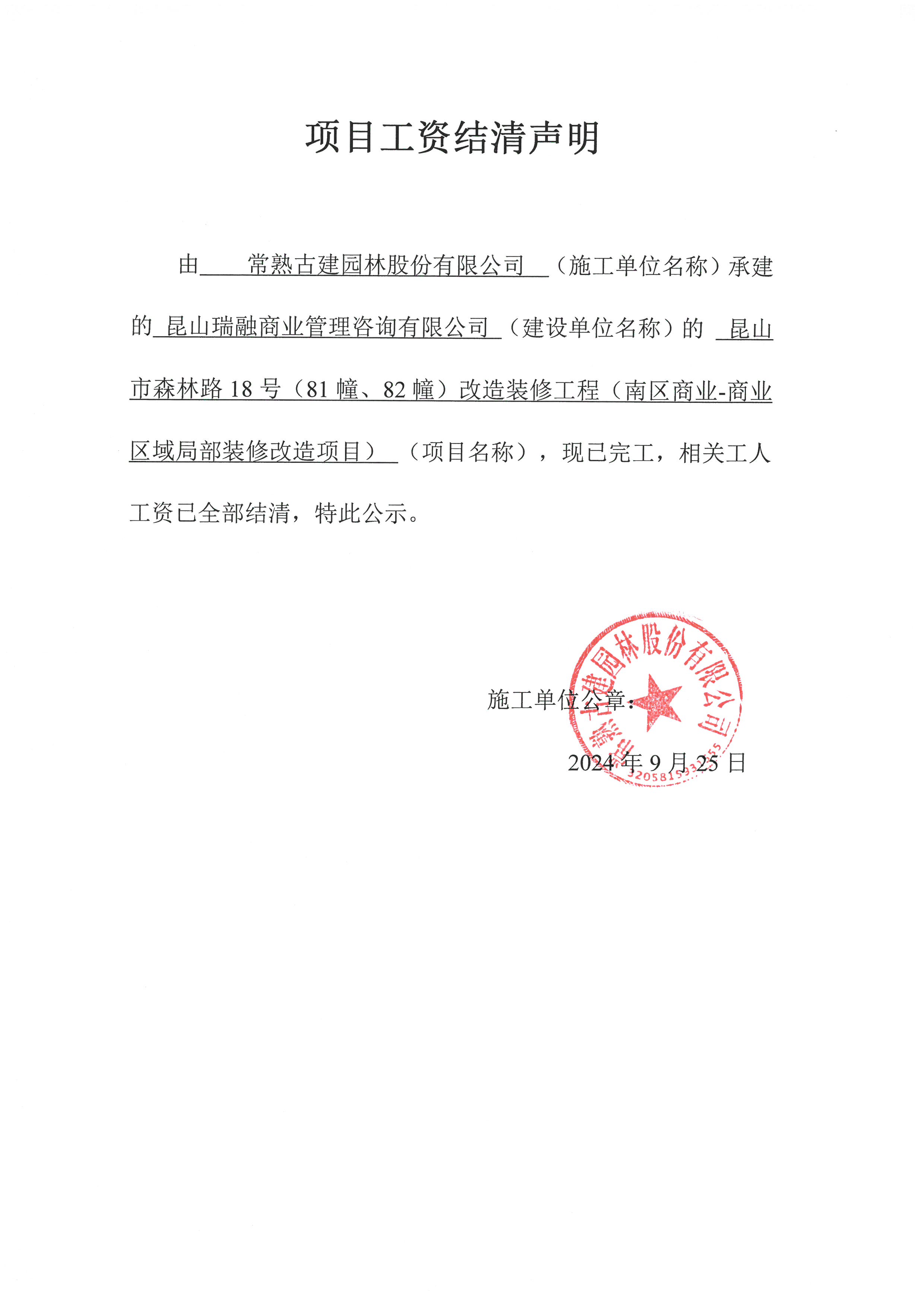 昆山市森林路18号(81幢、82幢)改造装修工程(南区商业-商业区域局部装修改造项目) 32250198648500005116