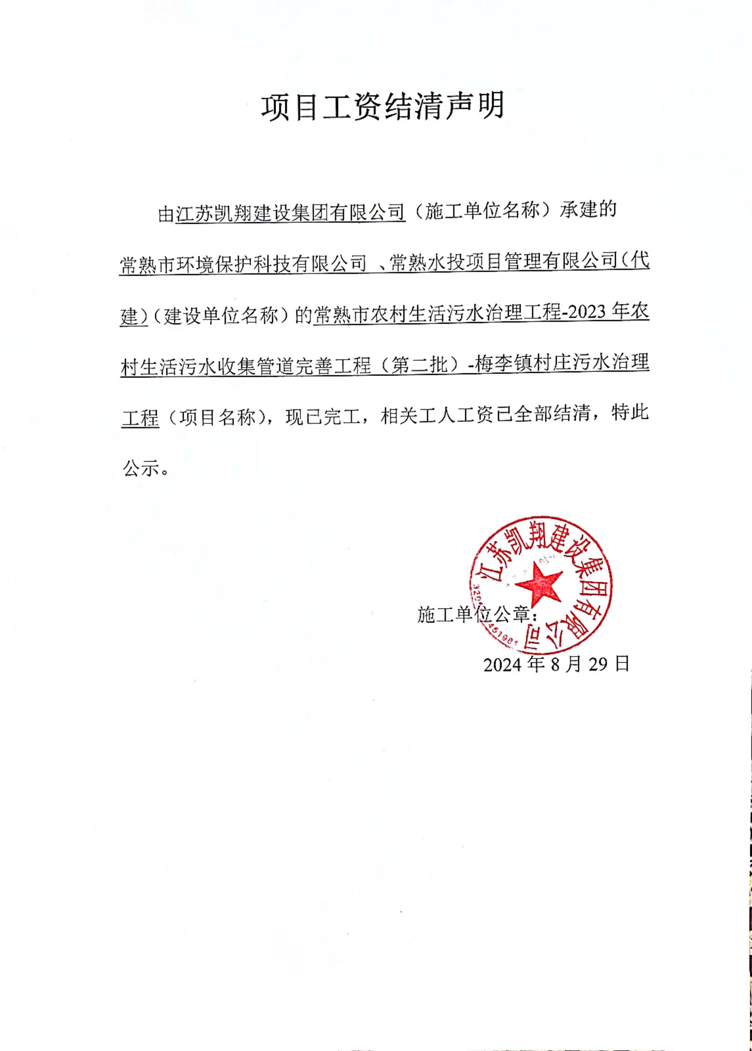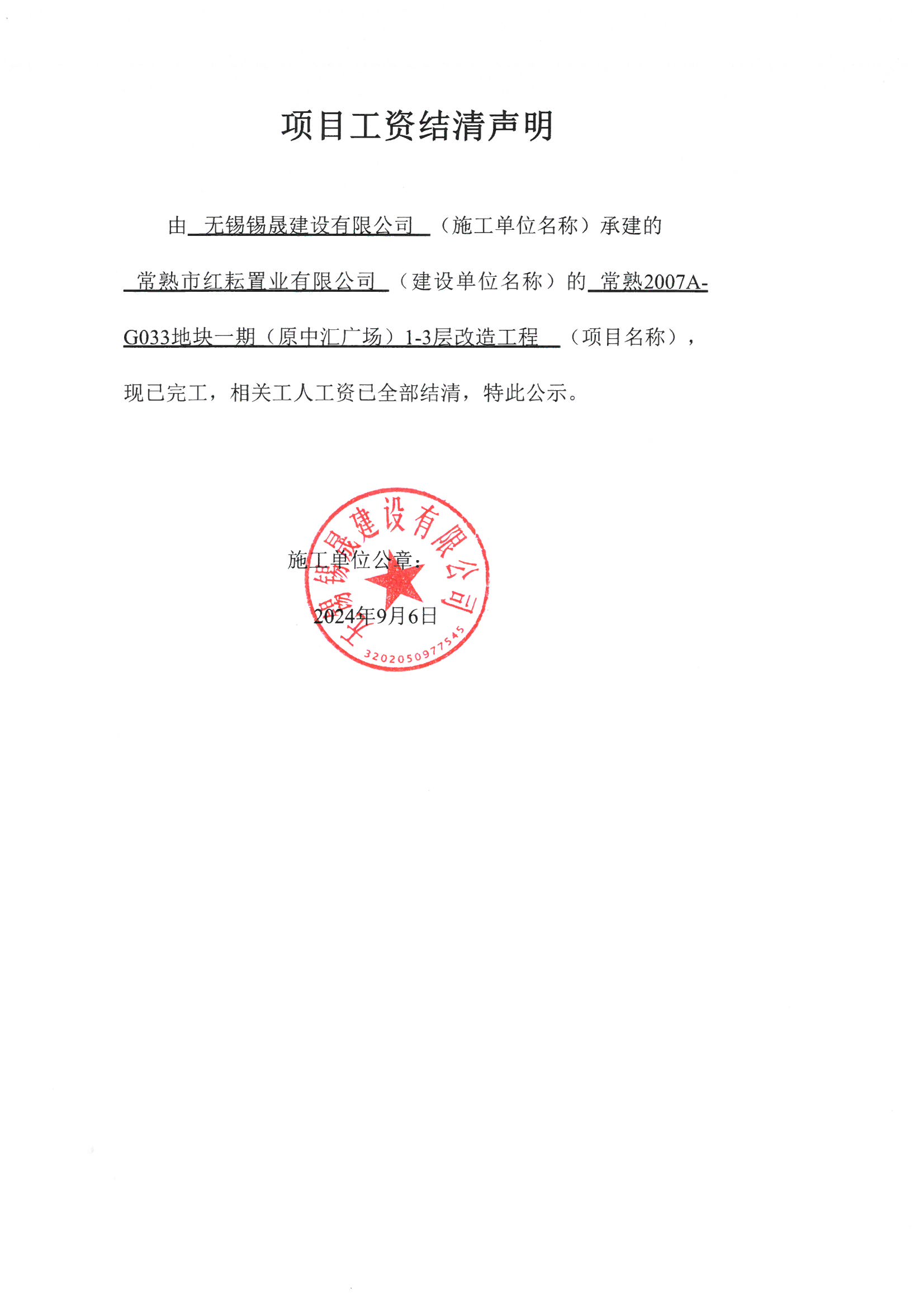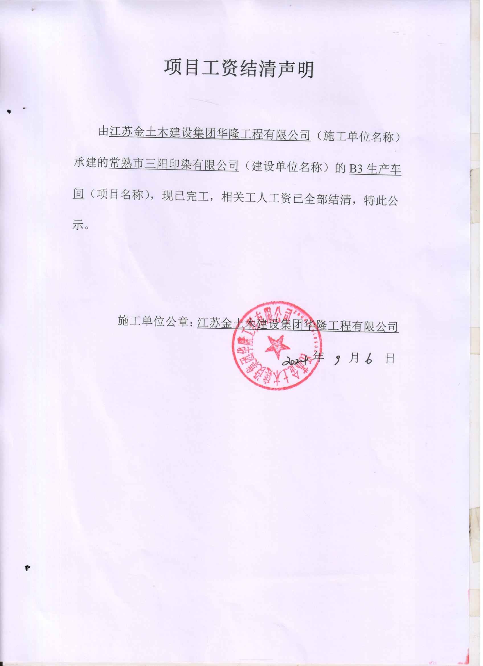 项目工资结清支付公示