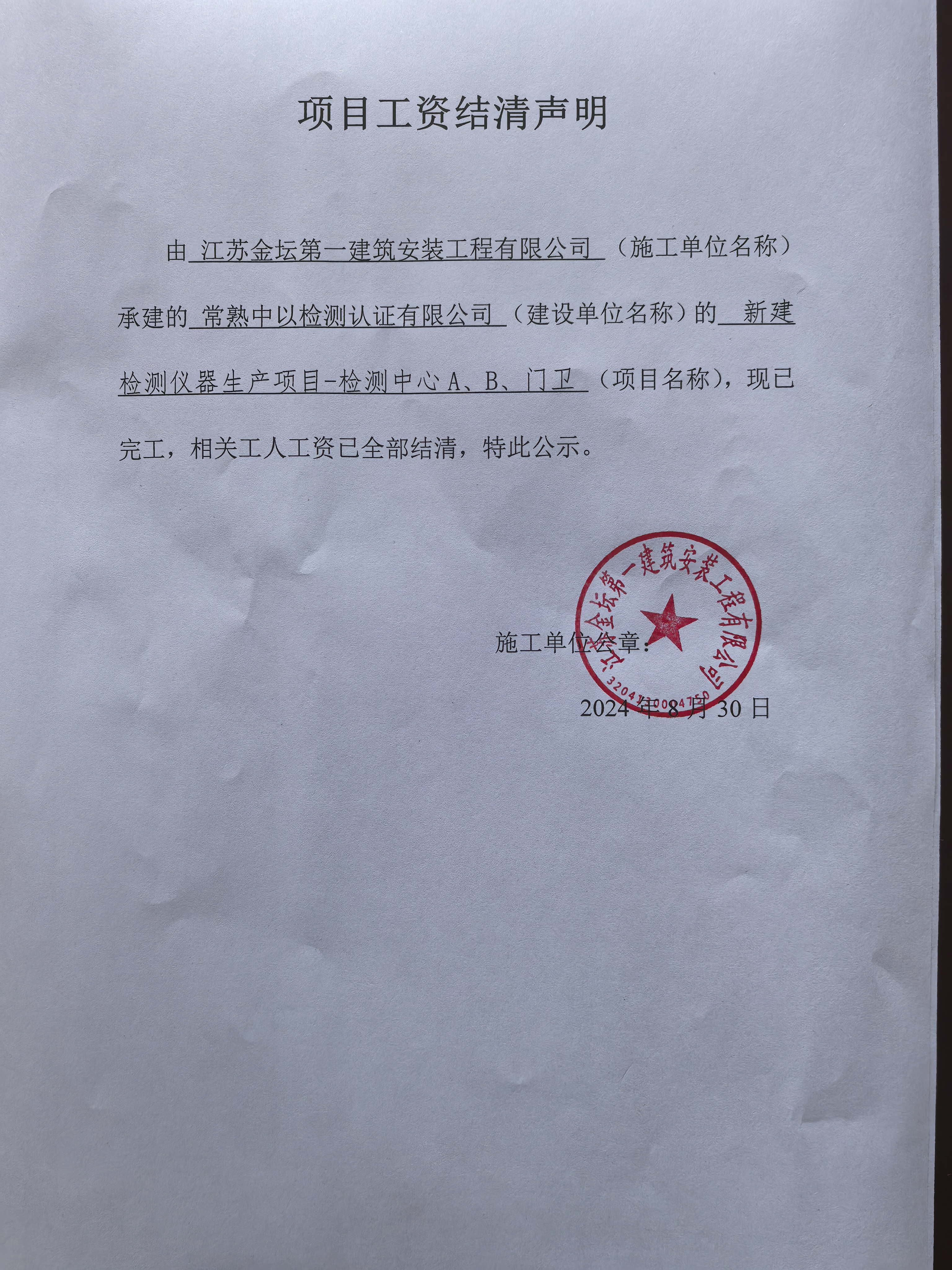 江苏金坛第一建筑安装工程有限公司