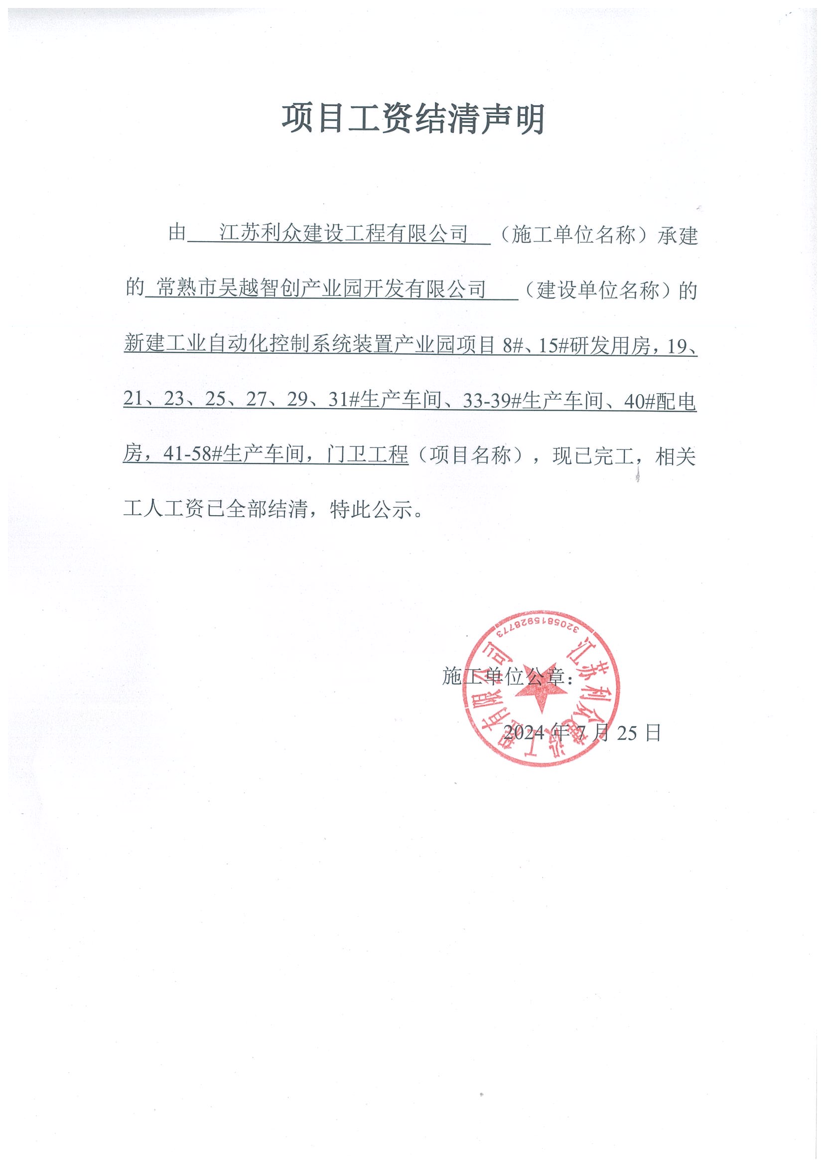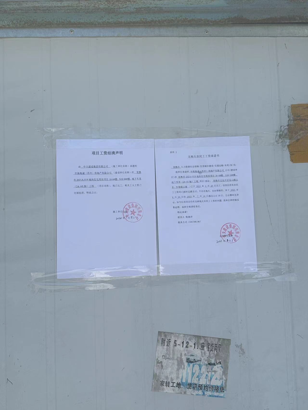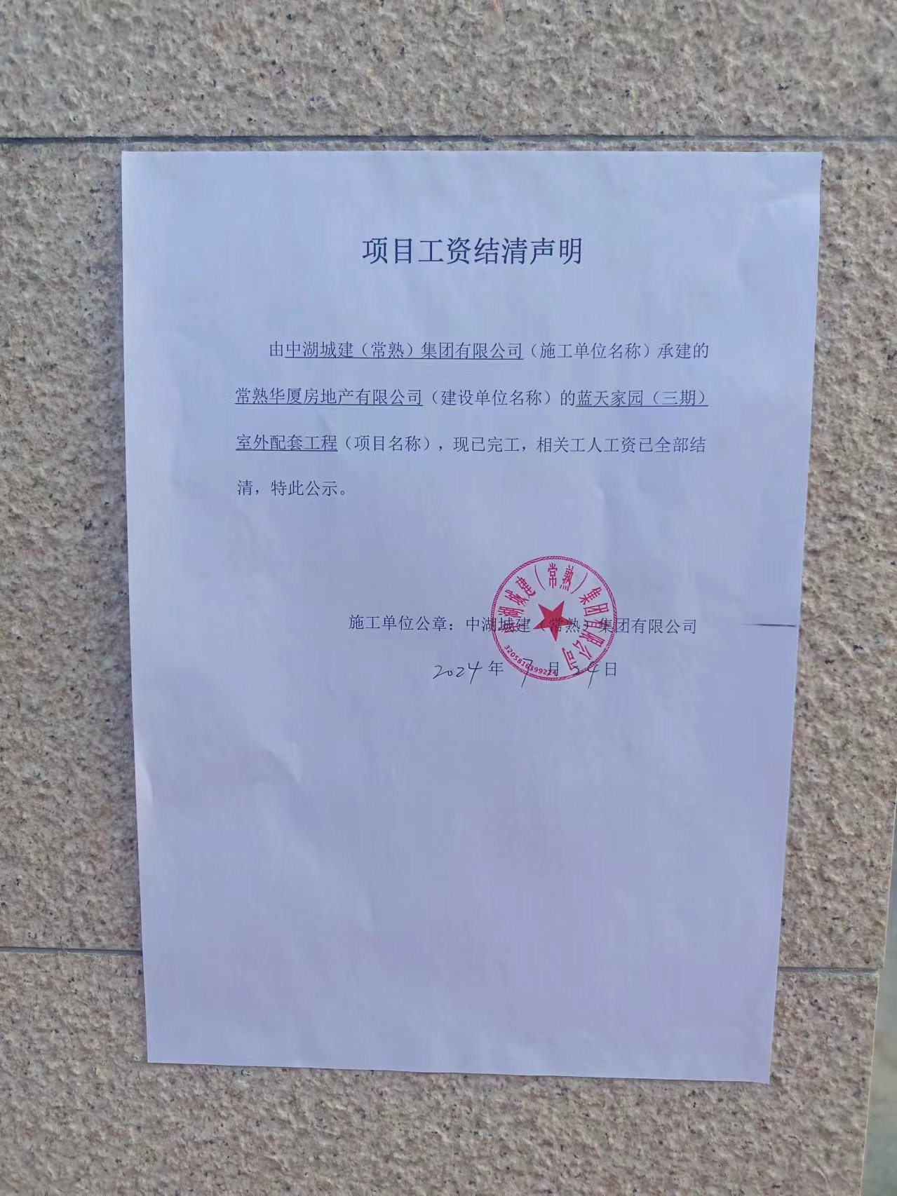项目工资结清支付公示