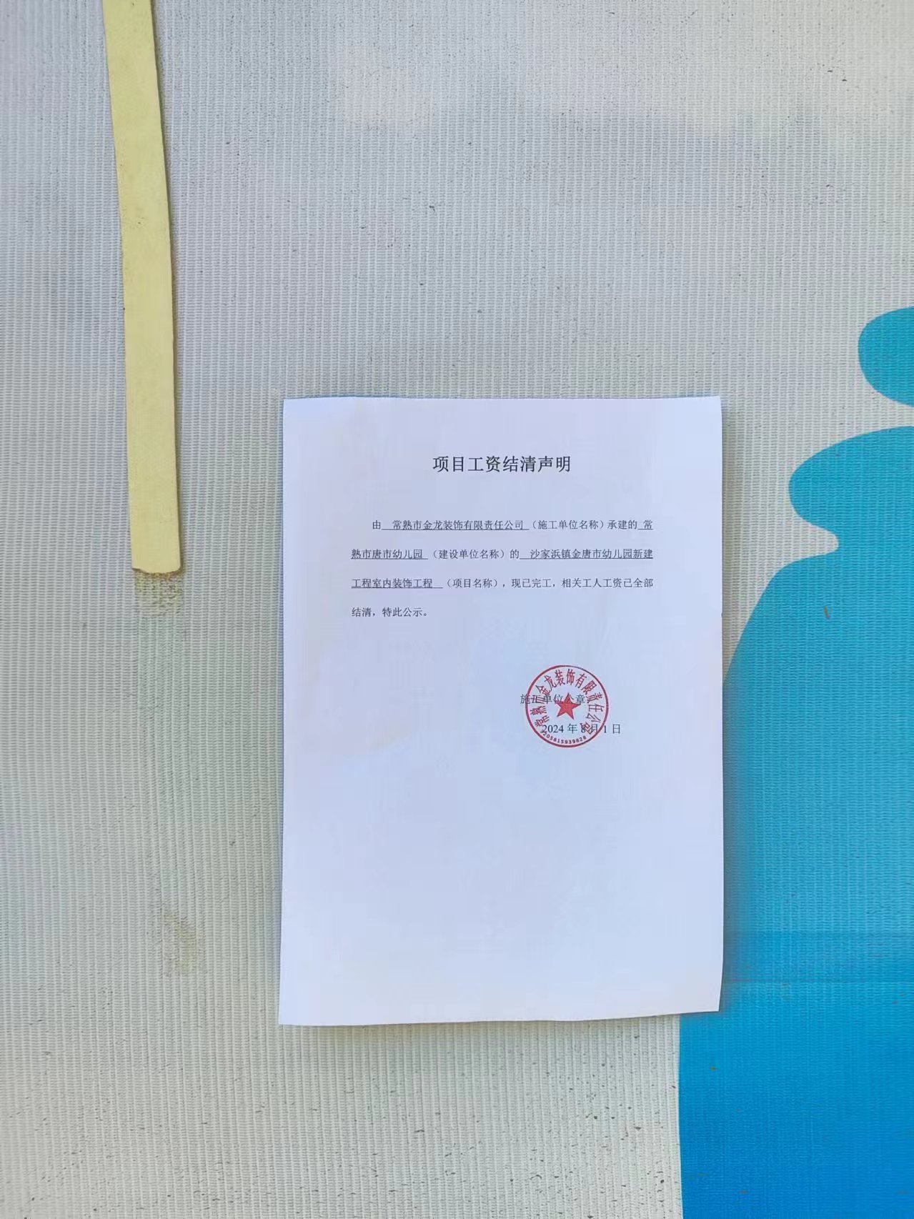 沙家浜镇金唐市幼儿园新建工程室内装饰工程