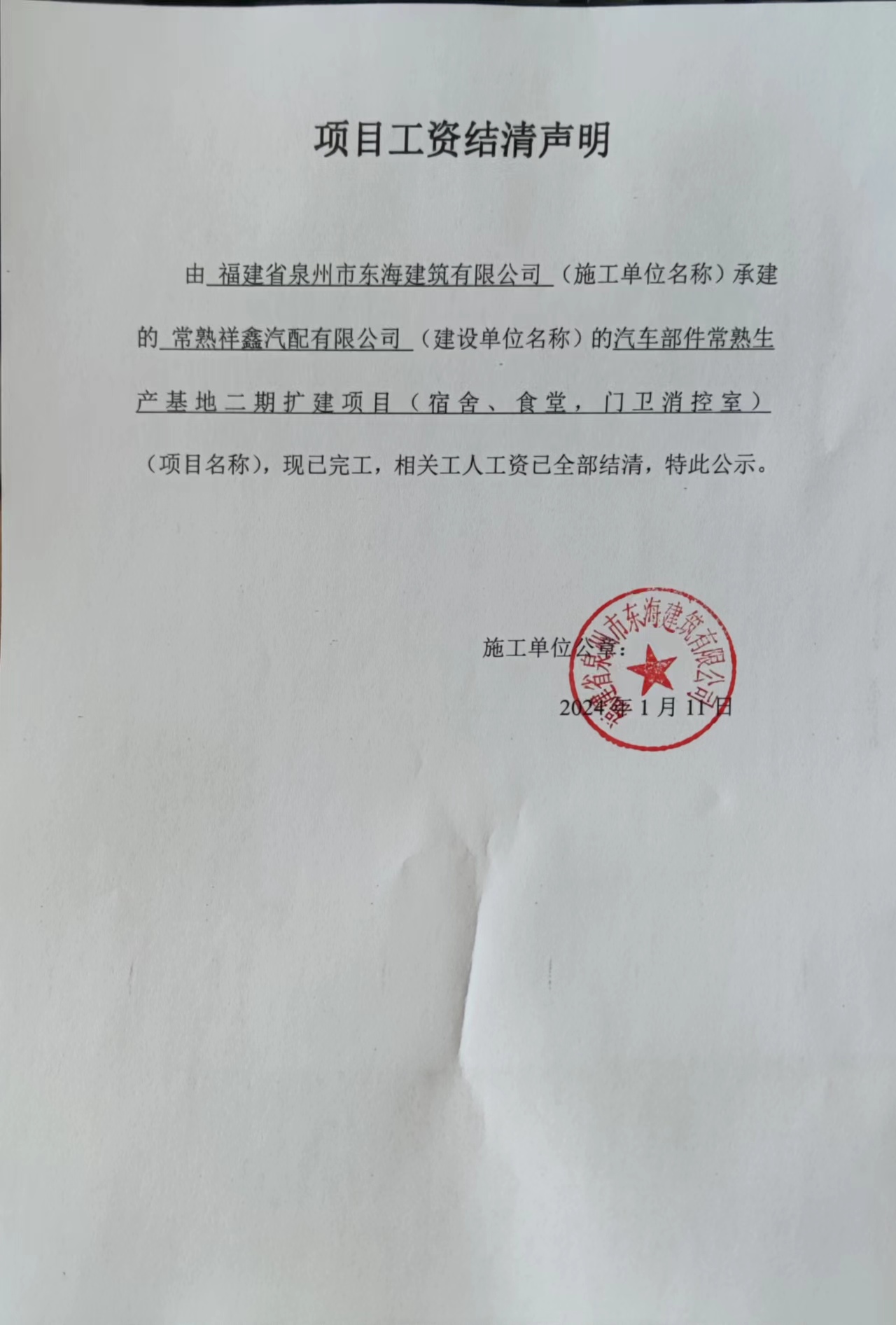 汽车部件常熟生产基地二期扩建项目(宿舍、食堂,门卫消控室)