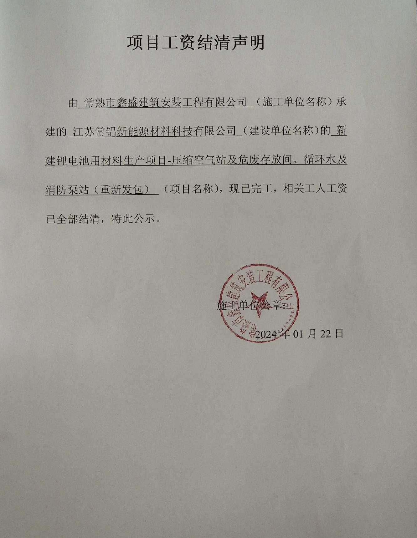 新建锂电池用材料生产项目-铝箔车间、压缩空气站及危废存放间、循环水及消防泵站