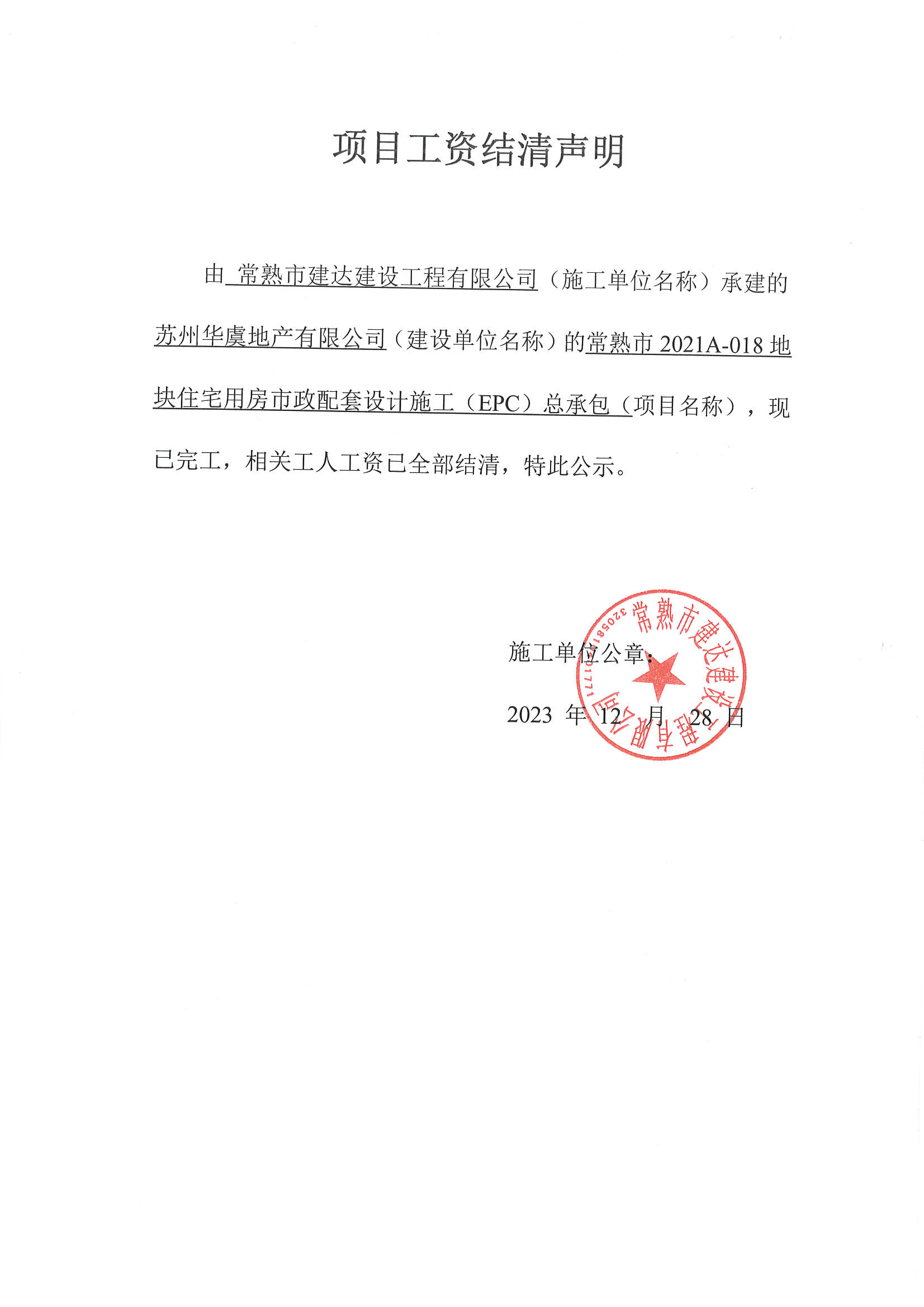 常熟市2021A-018地块住宅用房市政配套设计施工(EPC)总承包