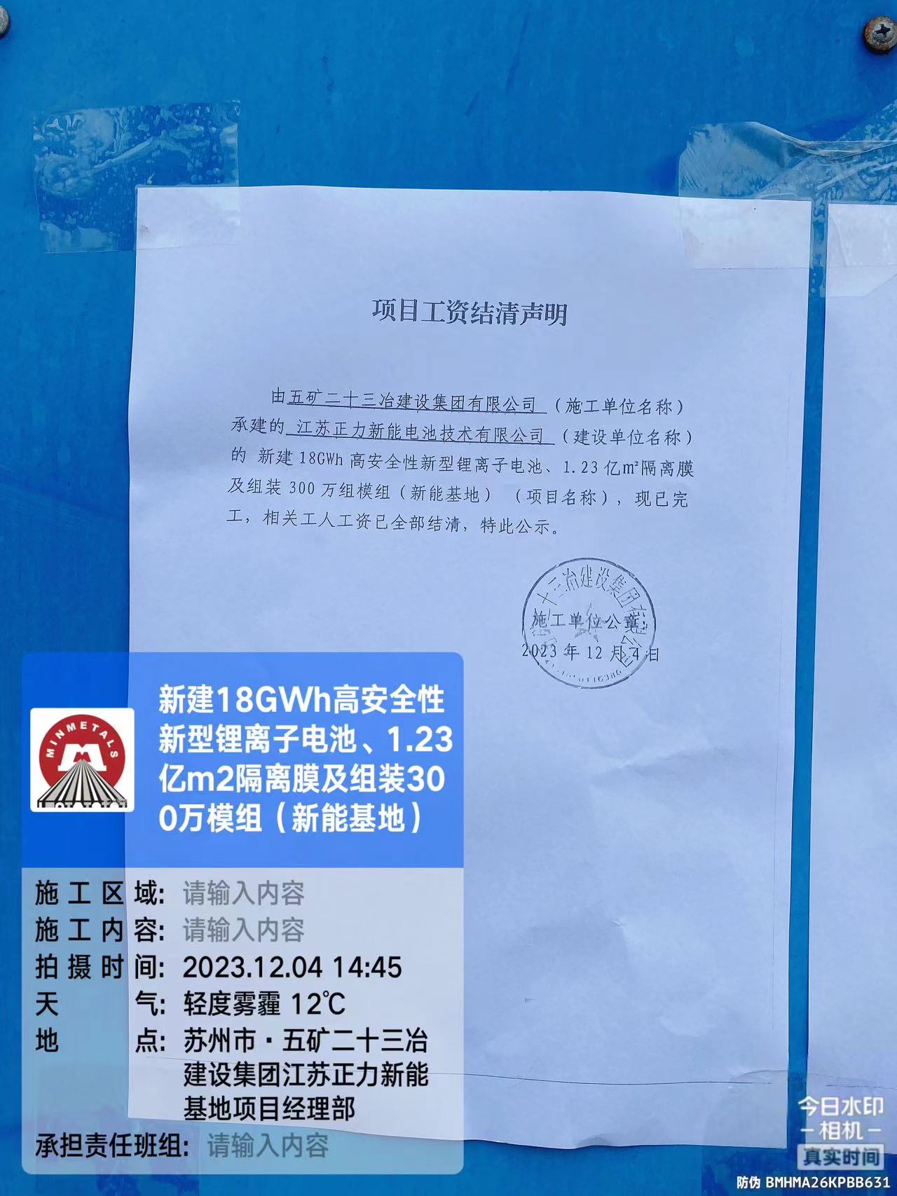 新建18GWh高安全性新型锂离子电池、1.23亿㎡隔离膜及组装300万组模组(新能基地)