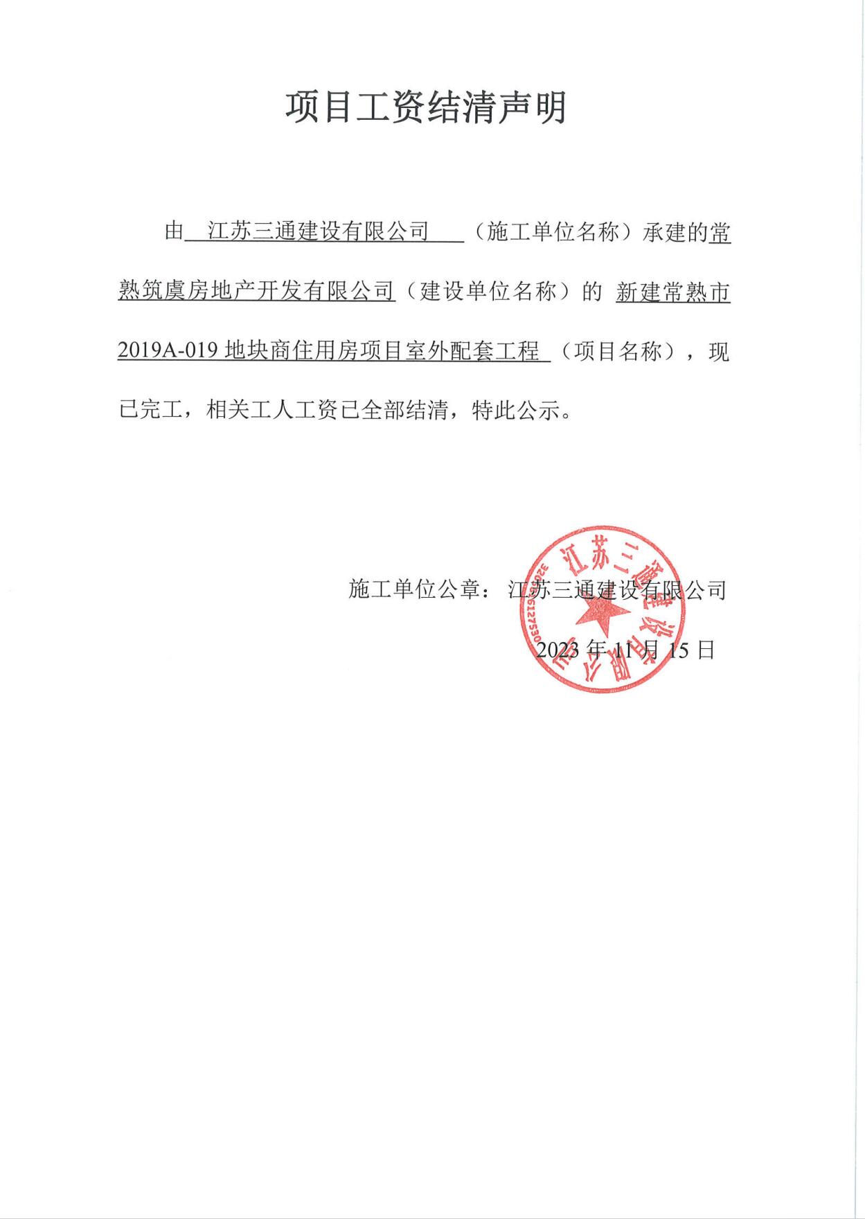 新建常熟市2019A-019地块商住用房项目室外配套工程