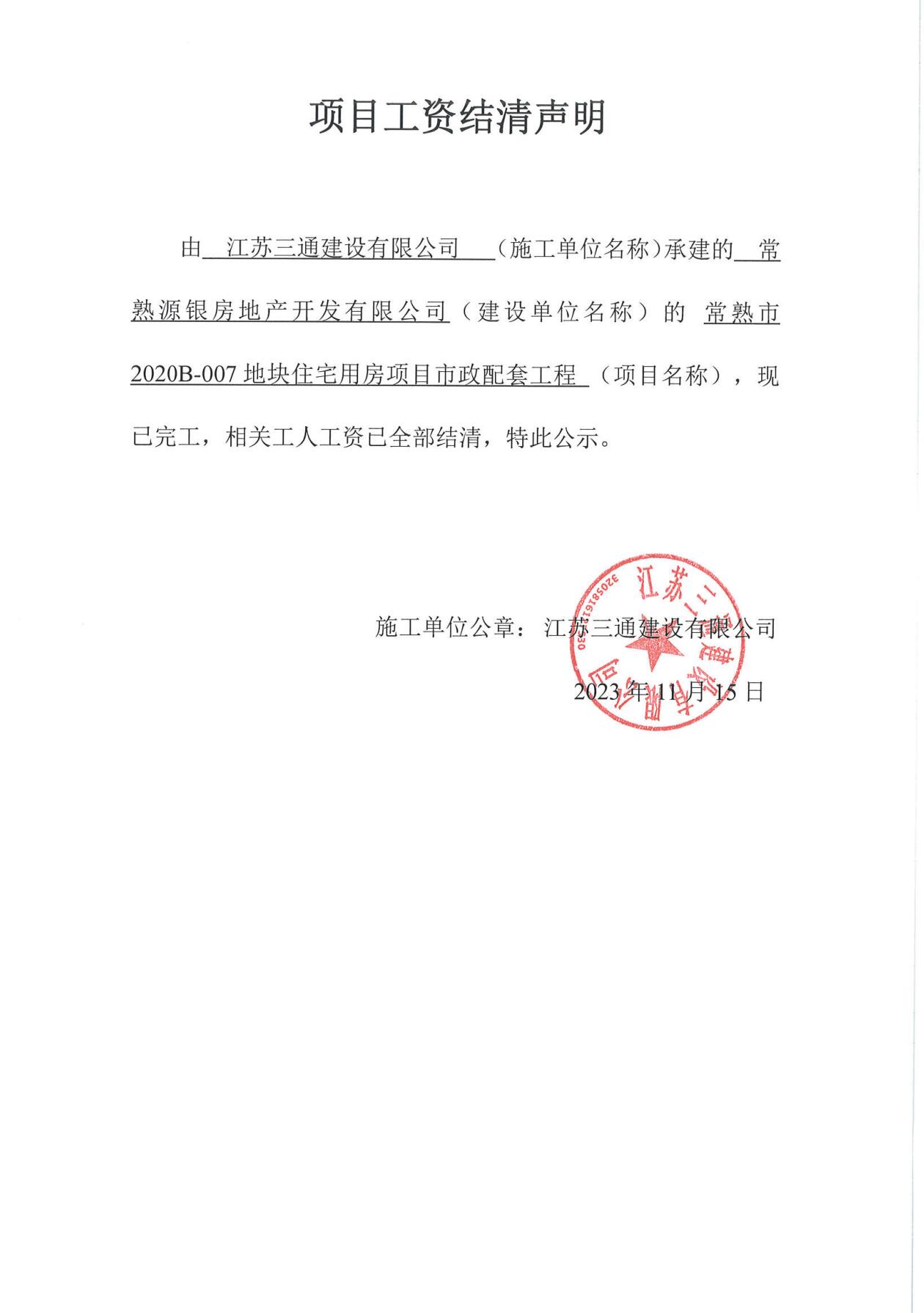 常熟市2020B-007地块住宅用房项目市政配套工程