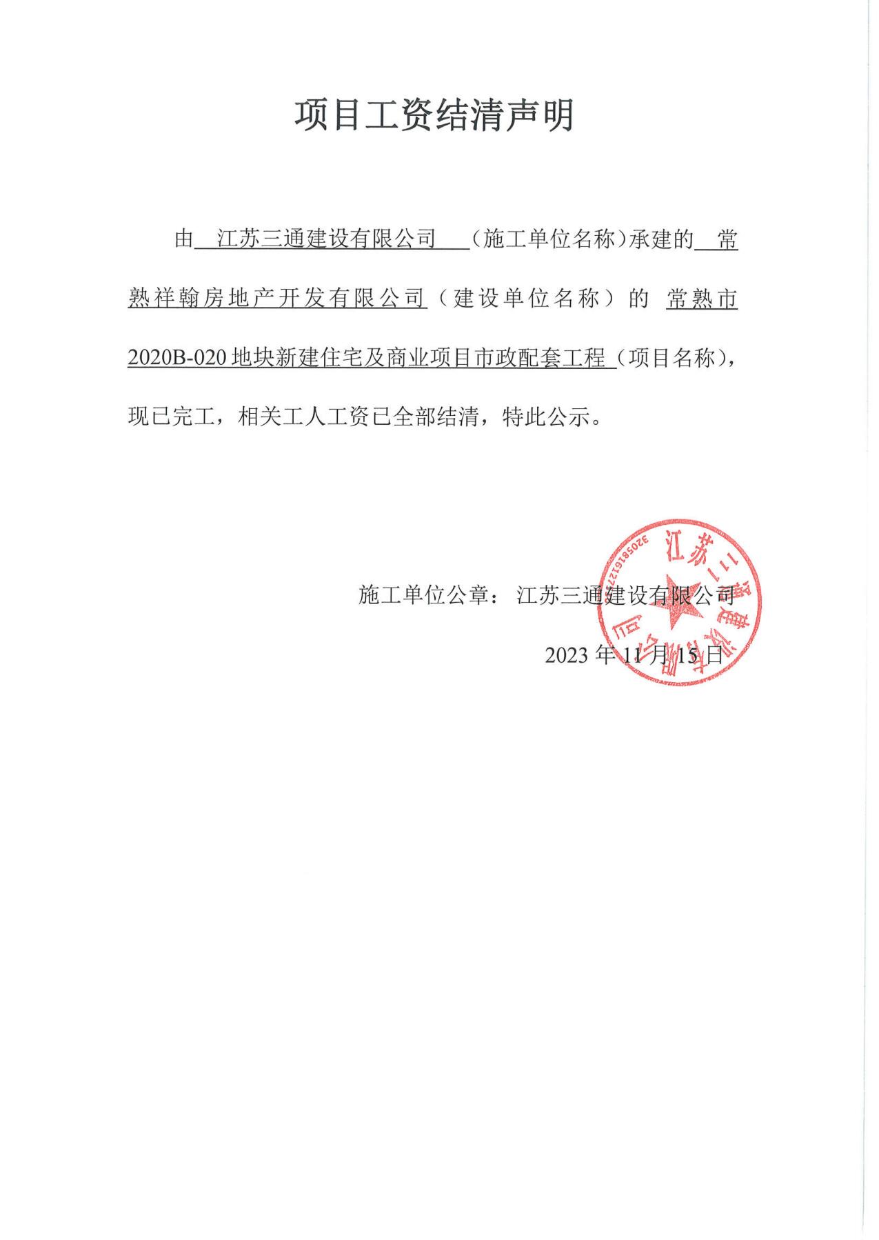 常熟市2020B-020地块新建住宅及商业项目市政配套工程