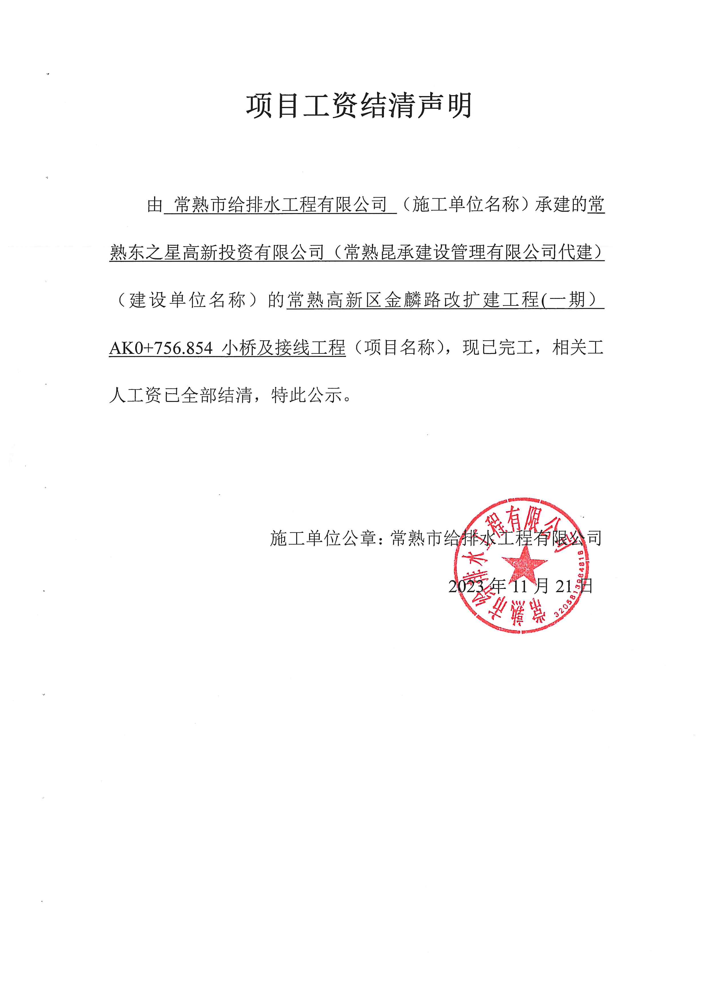 常熟高新区金麟路改扩建工程(一期)AK0+756.854小桥及接线工程