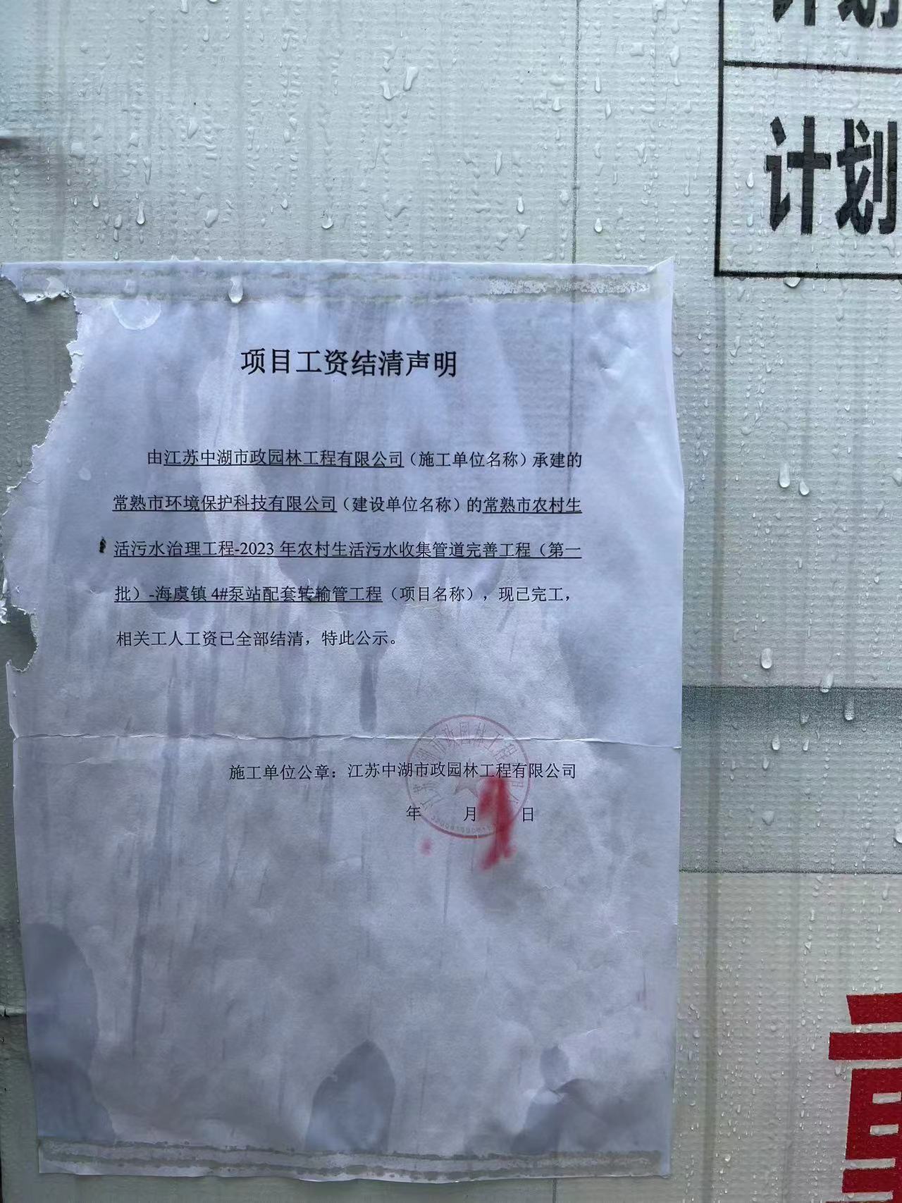 常熟市农村生活污水治理工程-2023年农村生活污水收集管道完善工程(第一批)-海虞镇4#泵站配套转输管工程