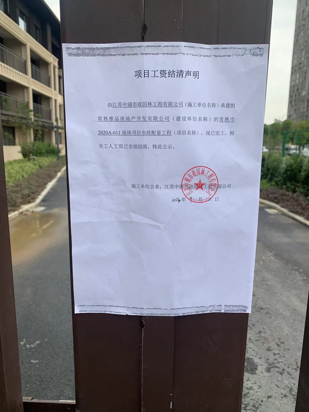 江苏中湖市政园林工程有限公司 常熟雅品房地产开发有限公司 常熟市2020A-011地块项目市政配套工程 2023-09-15