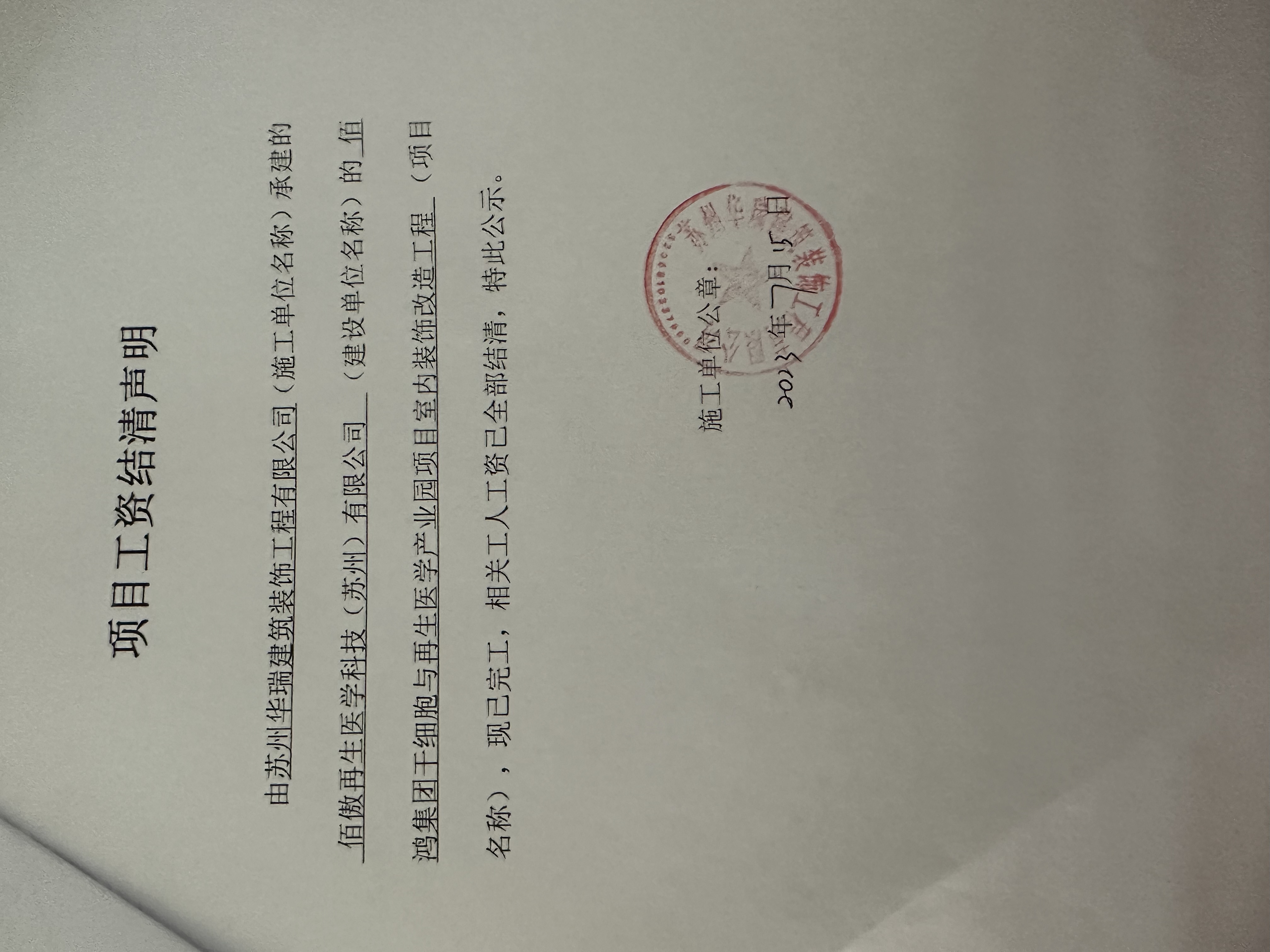 佰鸿集团干细胞与再生医学产业园项目室内装饰改造工程