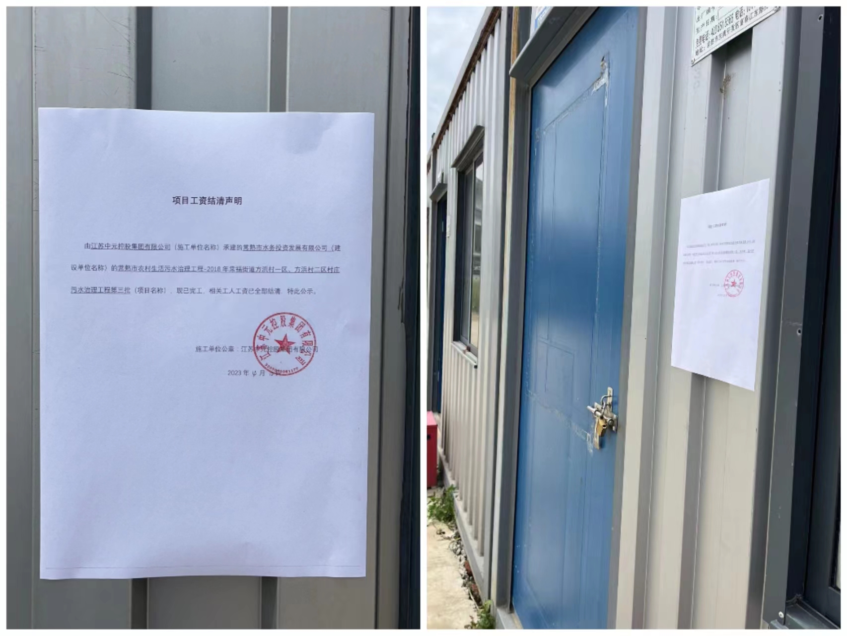 项目工资结清支付公示